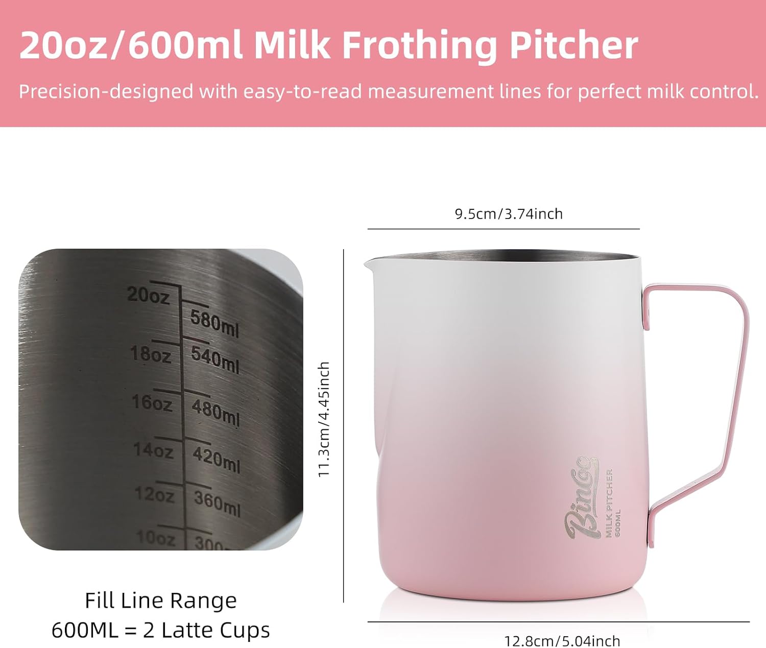 - ✅ 【Precise Measurement】 600ml capacity with clear inner markings (ml/oz) for perfect coffee-to-milk ratios—ideal for latte art!