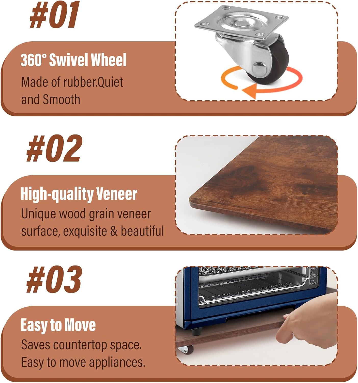 - 【Countertop Rolling Tray】The sliding tray uses 360° rubber wheels, allowing for horizontal or vertical placement and full mobility. Convenient for moving various kitchen appliances.