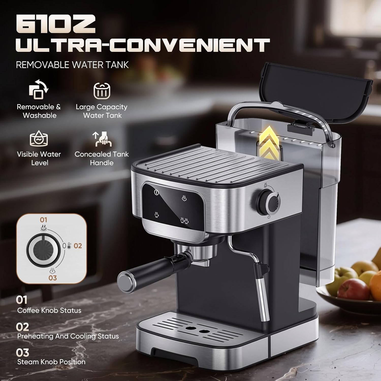 Espresso Machine 20 Bar, Professional Espresso Maker with Power Milk Frother,Compact Espresso Coffee Machine With LED Touch Screen for Home Latte, Cappuccino, 61OZ Removable Water Tank 2025