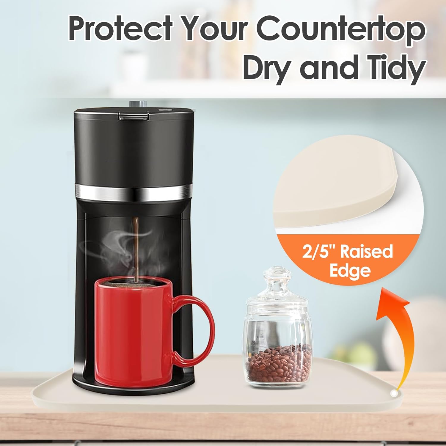 Silicone Coffee Maker Mat with Lip, 24'' x 16'' Heavy Duty Coffee Maker Mat for Countertops, Coffee Tray Fit Under Coffee Machine Appliance Automatic Machines Espresso Accessory, Beige