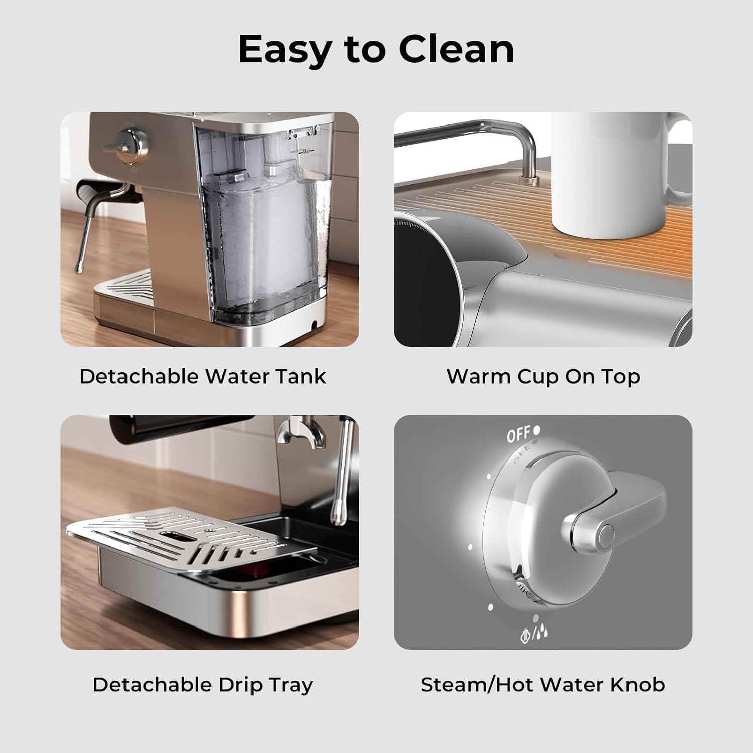 - Convenient & Energy-saving : The top of the espresso coffee machine has the function of preheating and insulation. Even if you forget to turn it off after use, you don’t need to worry. After stopping the operation for 25 minutes, it will automatically enter standby mode, making it safer and more energy-saving