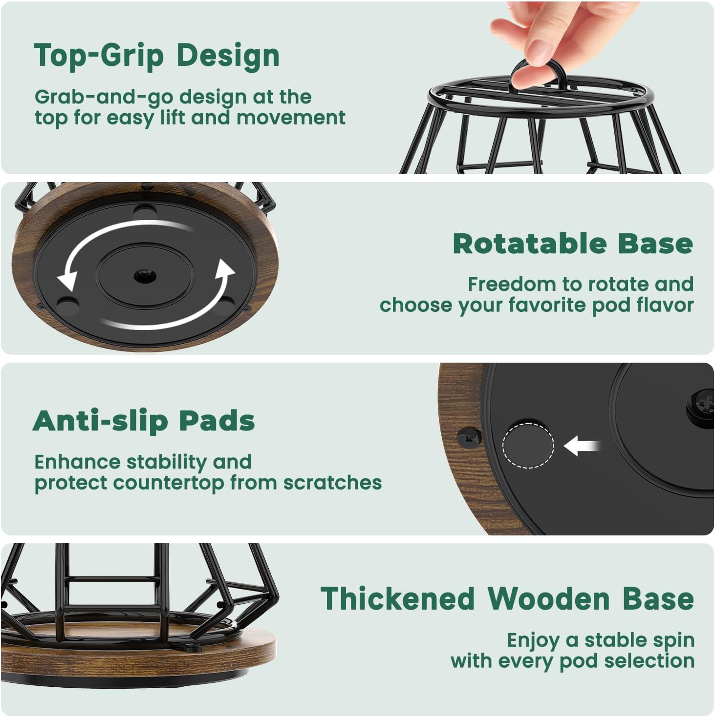 - Generous 36-Pod Capacity: Store up to 36 coffee pods securely in one compact stand. Our upgraded groove design keeps pods from falling out, giving you peace of mind and a fully stocked coffee station that's always ready for guests or your next brew