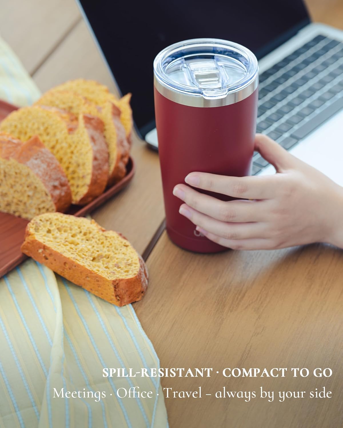 Travel Coffee Tumbler 20oz, Leakproof Travel Coffee Mug with Lid and Straw, Stainless Steel Double Wall Vacuum Insulated Tumbler for Hot/Iced Drinks (Textured Matte, Red)