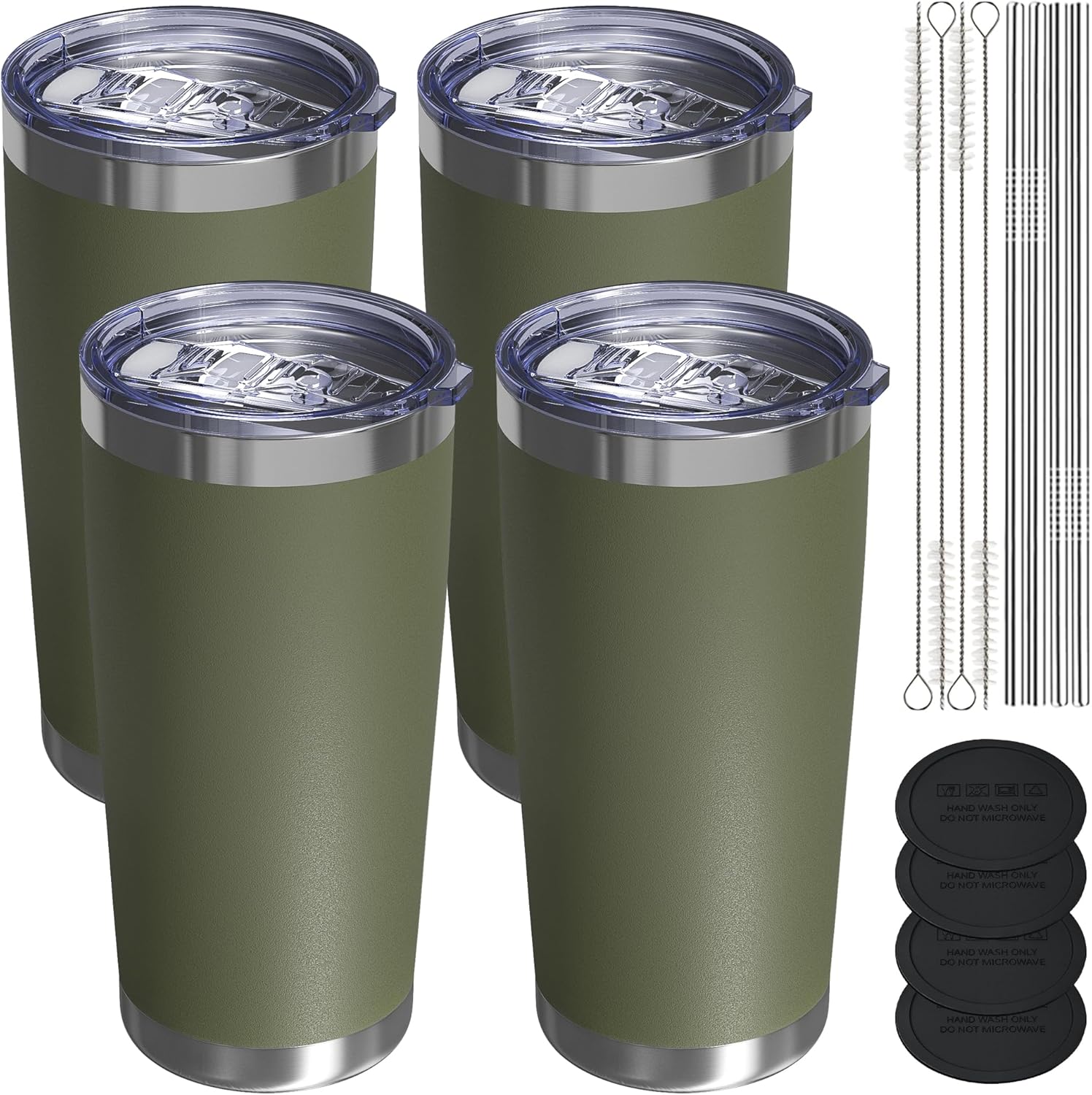Travel Coffee Tumbler 20oz, 4 Pack Leakproof Travel Coffee Mug with Lid and Straw, Stainless Steel Double Wall Vacuum Insulated Tumbler for Hot/Iced Drinks (Textured Matte, Army Green)