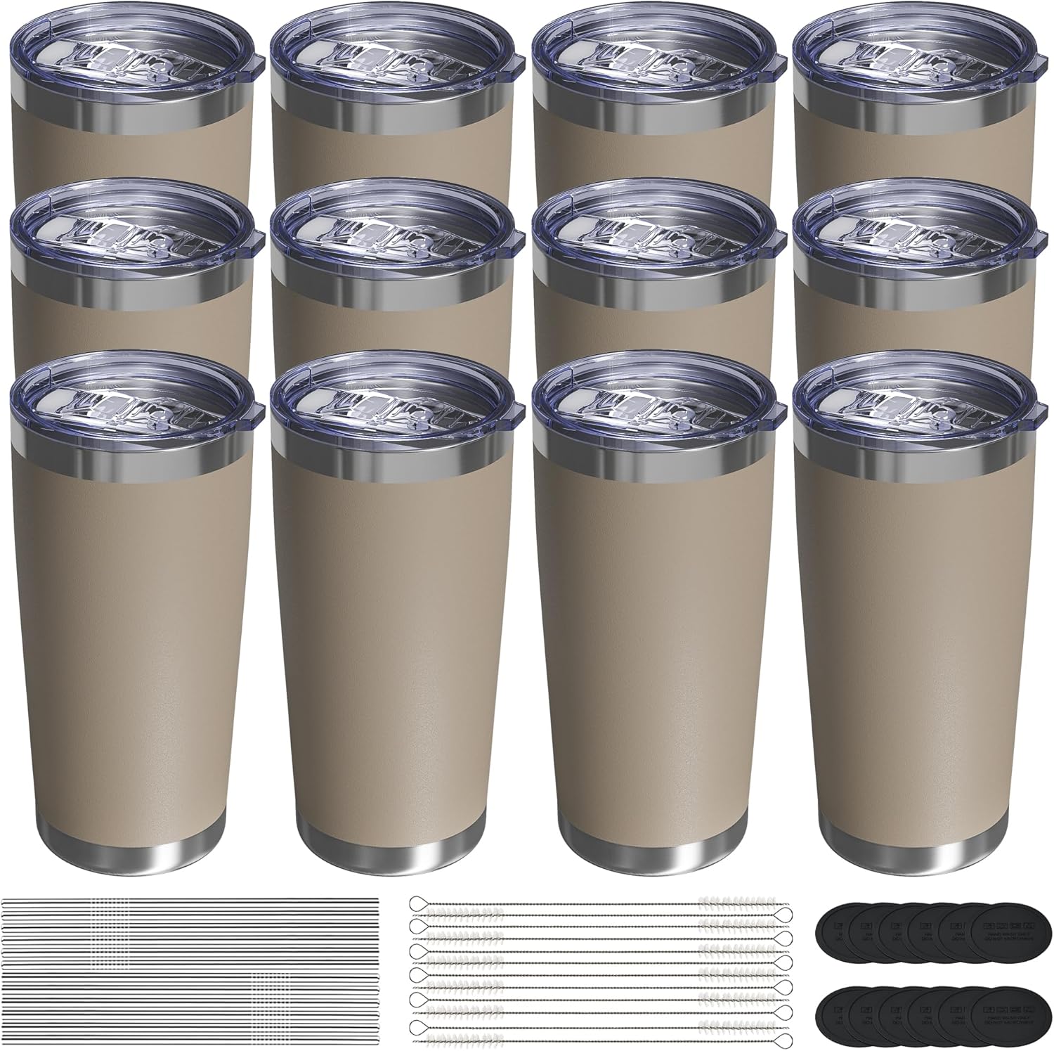 Travel Coffee Tumbler 20oz, 12 Pack Leakproof Travel Coffee Mug with Lid and Straw, Stainless Steel Double Wall Vacuum Insulated Tumbler for Hot/Iced Drinks (Textured Matte, Brown)