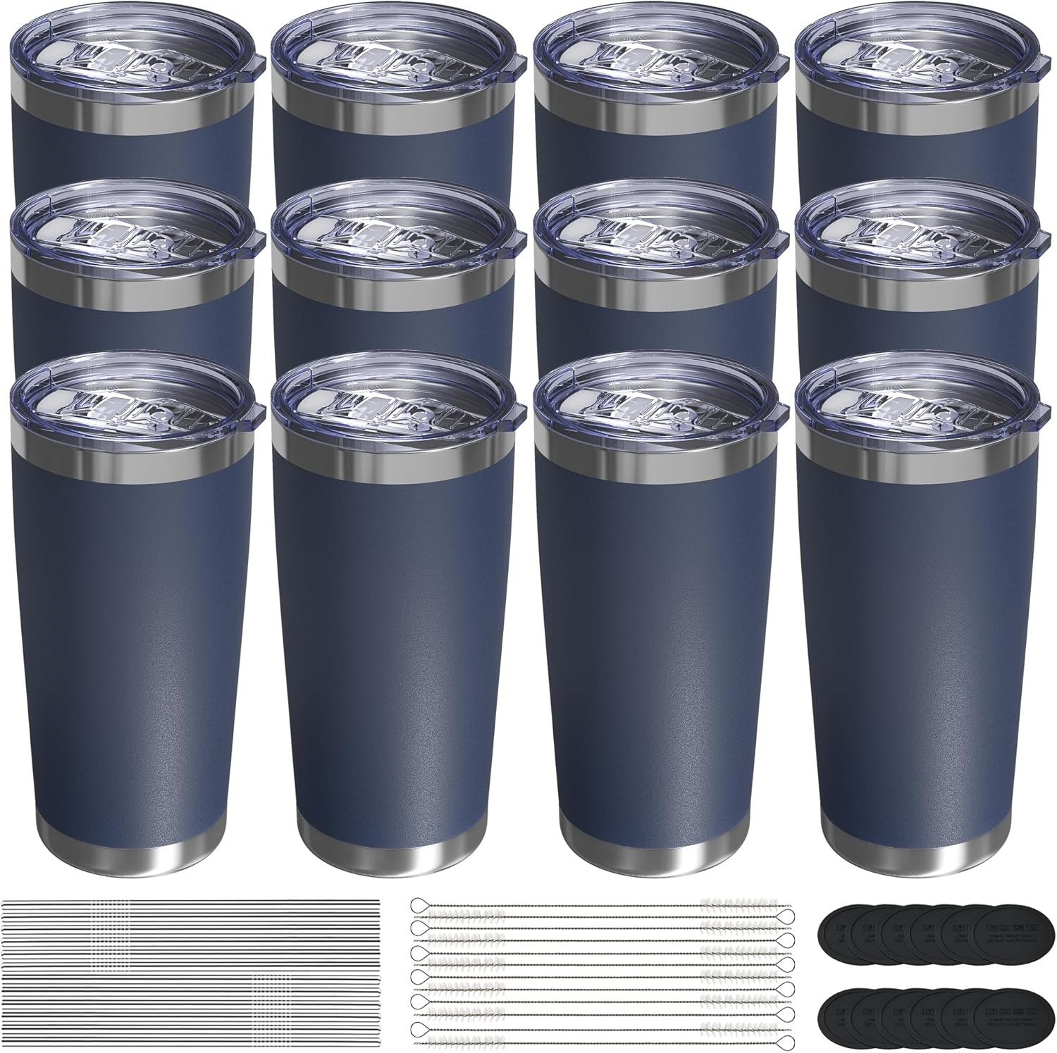 Travel Coffee Tumbler 20oz, 12 Pack Leakproof Travel Coffee Mug with Lid and Straw, Stainless Steel Double Wall Vacuum Insulated Tumbler for Hot/Iced Drinks (Textured Matte, Navy Blue)
