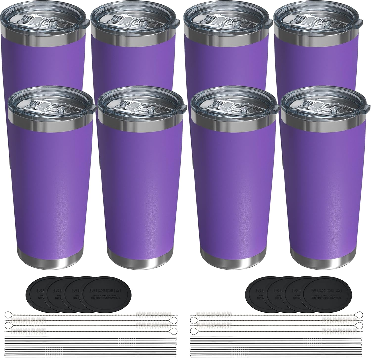 Travel Coffee Tumbler 20oz, 8 Pack Leakproof Travel Coffee Mug with Lid and Straw, Stainless Steel Double Wall Vacuum Insulated Tumbler for Hot/Iced Drinks (Textured Matte, Purple)