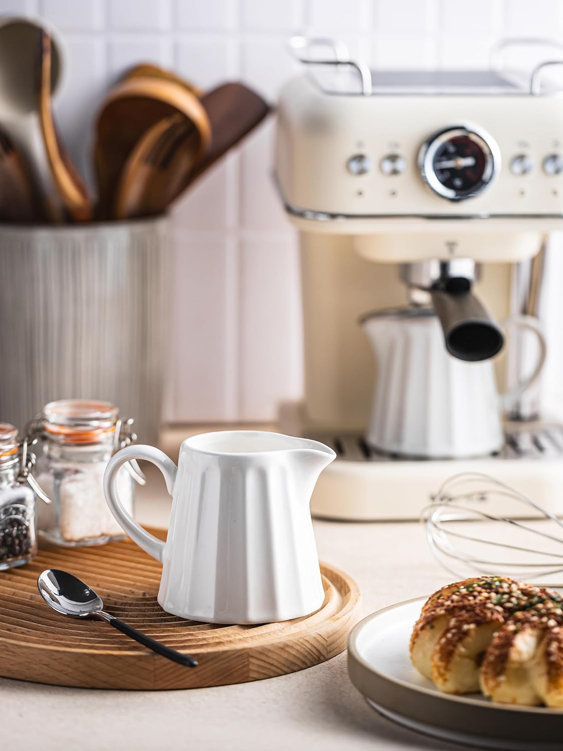 - Elegant Ceramic Creamer Pitcher: 10 oz capacity, ideal for serving milk, cream, sauces, or heating maple syrup for pancakes and milk for coffee. Compact yet practical for daily use