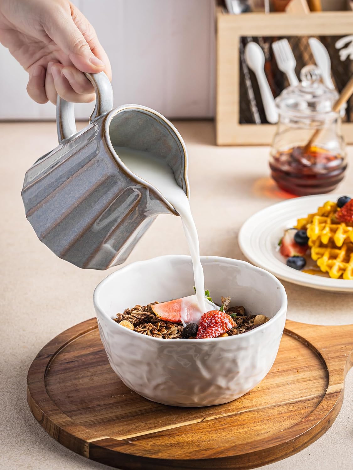 - Elegant Ceramic Creamer Pitcher: 17 oz capacity, ideal for serving milk, cream, sauces, or heating maple syrup for pancakes and milk for coffee. Compact yet practical for daily use