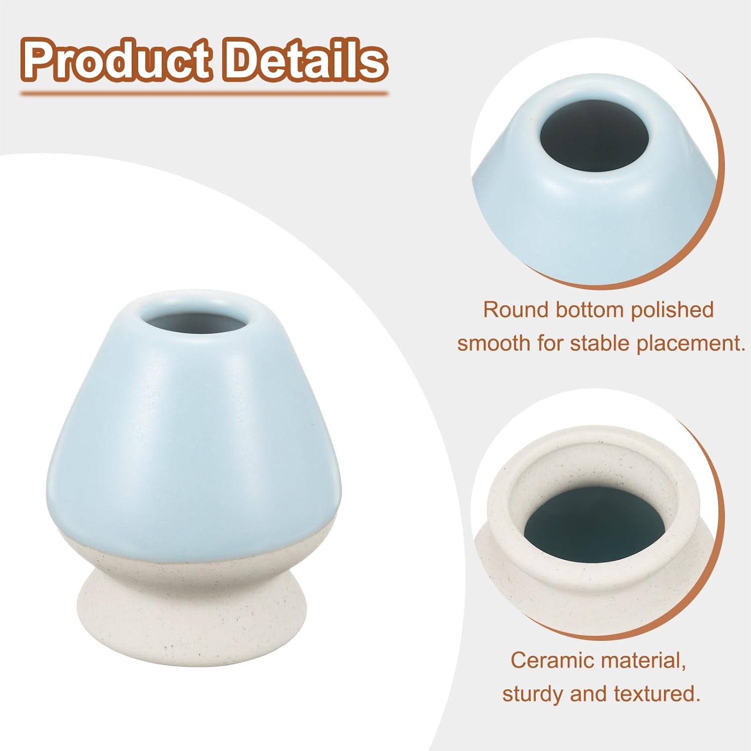 HARFINGTON Ceramic Chasen Stand 70mm Matcha Whisk Holder Teas Set Whisks Stand Traditional Matcha Tea Chasen Holder Tea Set Accessories for Tea Tasting, Beige/Cyan