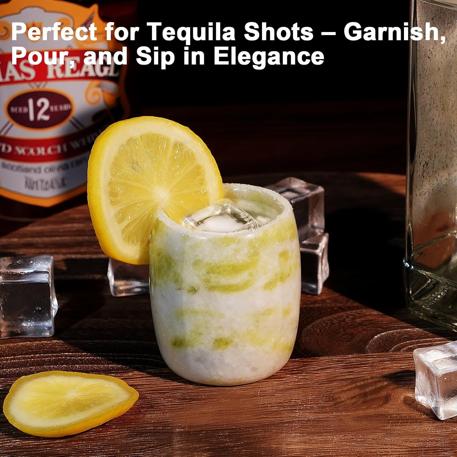 Handcrafted Natural Jade Shot Glasses – Set of 2 | 1.8 oz Whiskey, Espresso & Tequila Cups in Unique Drum Shape, Oriental Inspired Luxury Gift for Men & Whiskey Lovers