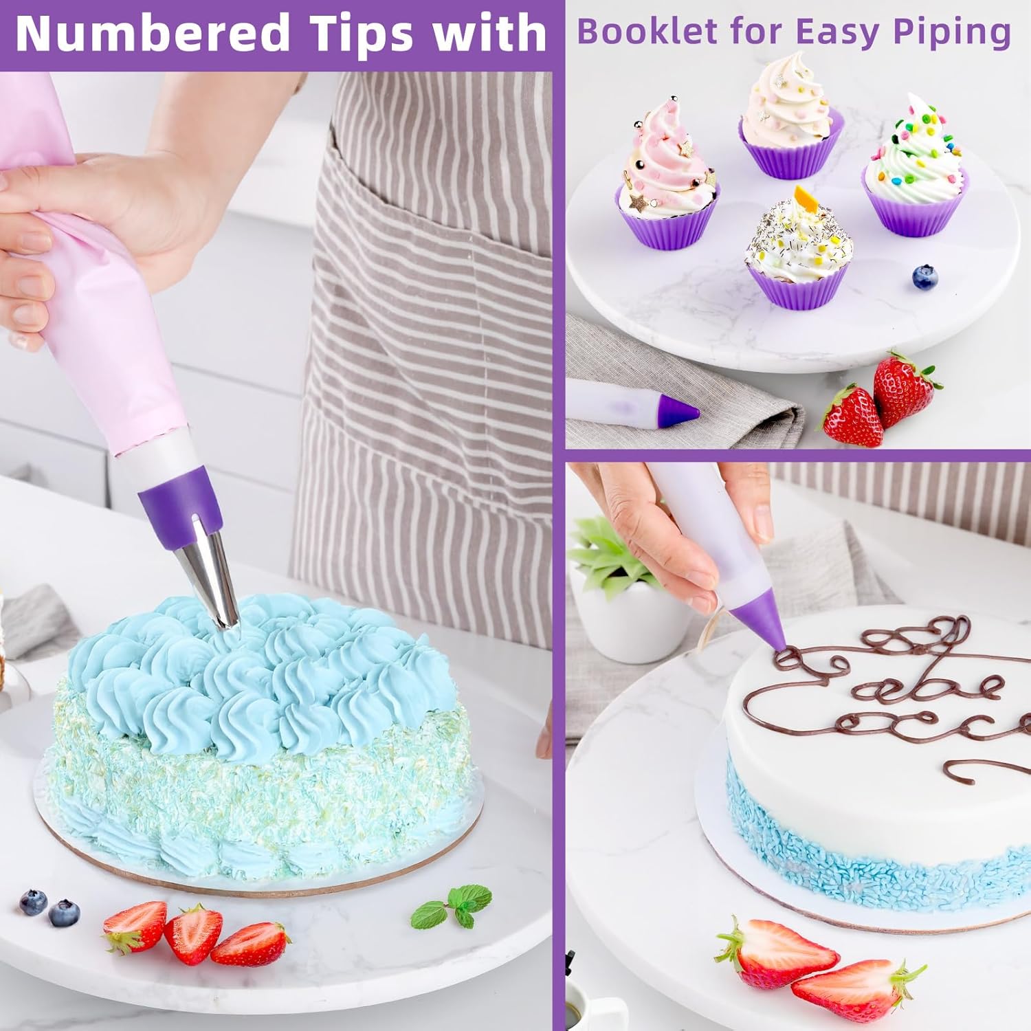 Cake Decorating Kit: Decorating Supplies Tools Kit 235 PCS Baking Accessories Include Spiping Bags and Tips Set, Piping Tips Set, Spatulas, Cake Scraper, 100 Piping Bags, Purple