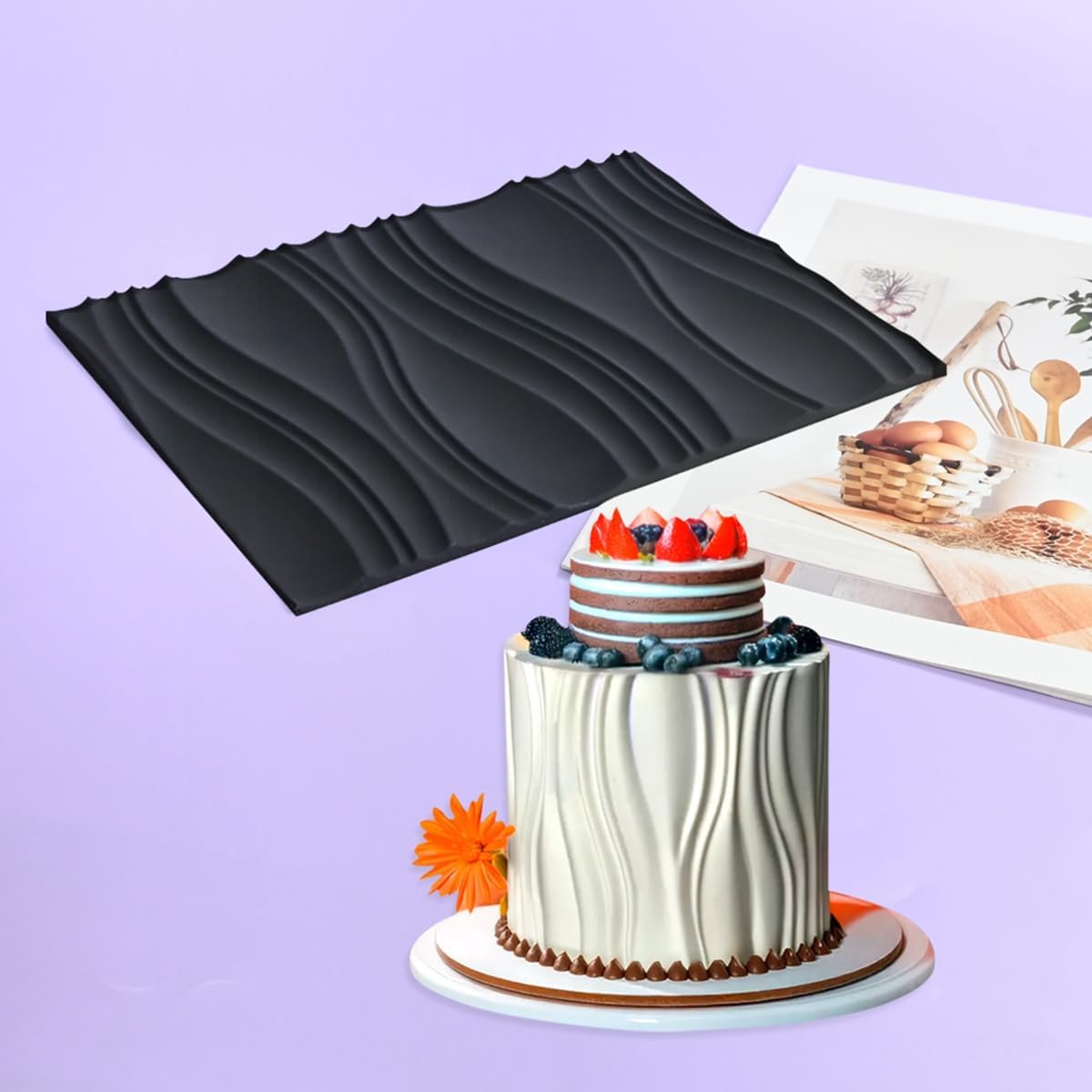 mostsom Silicone Fondant Mold Wave Pattern Embossing Mat for Cake Decorating DIY Clay, Jewelry, Pastry, Candy Making - Non-Stick Flexible Border Design (A_ Wave)