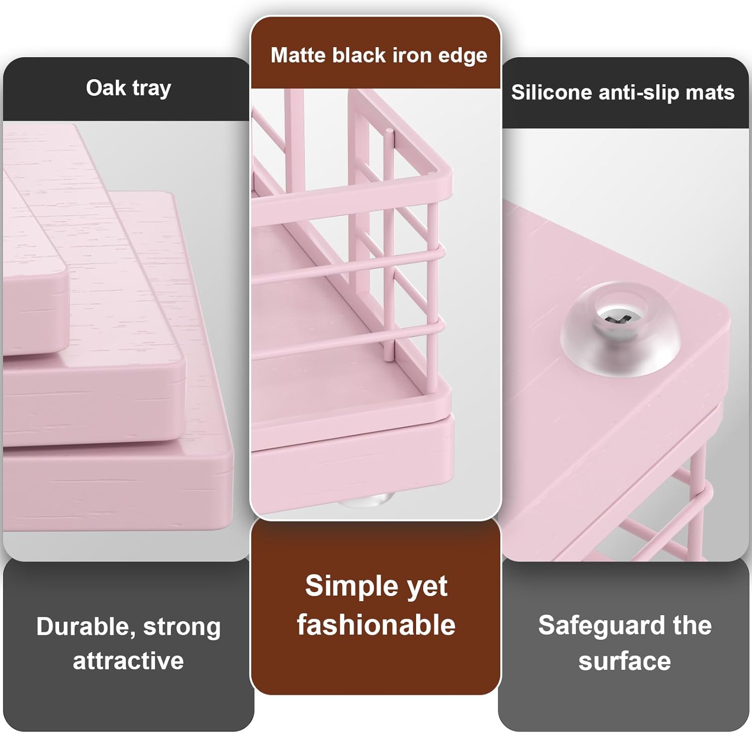 - Cost-effective: No assembly required, easy to clean. The tray crafted from iron and oak is simple and attractive. The solid bottom ensures items won't fall. With silicone non-slip pads, it provides both anti-slip functionality and better protection for surfaces
