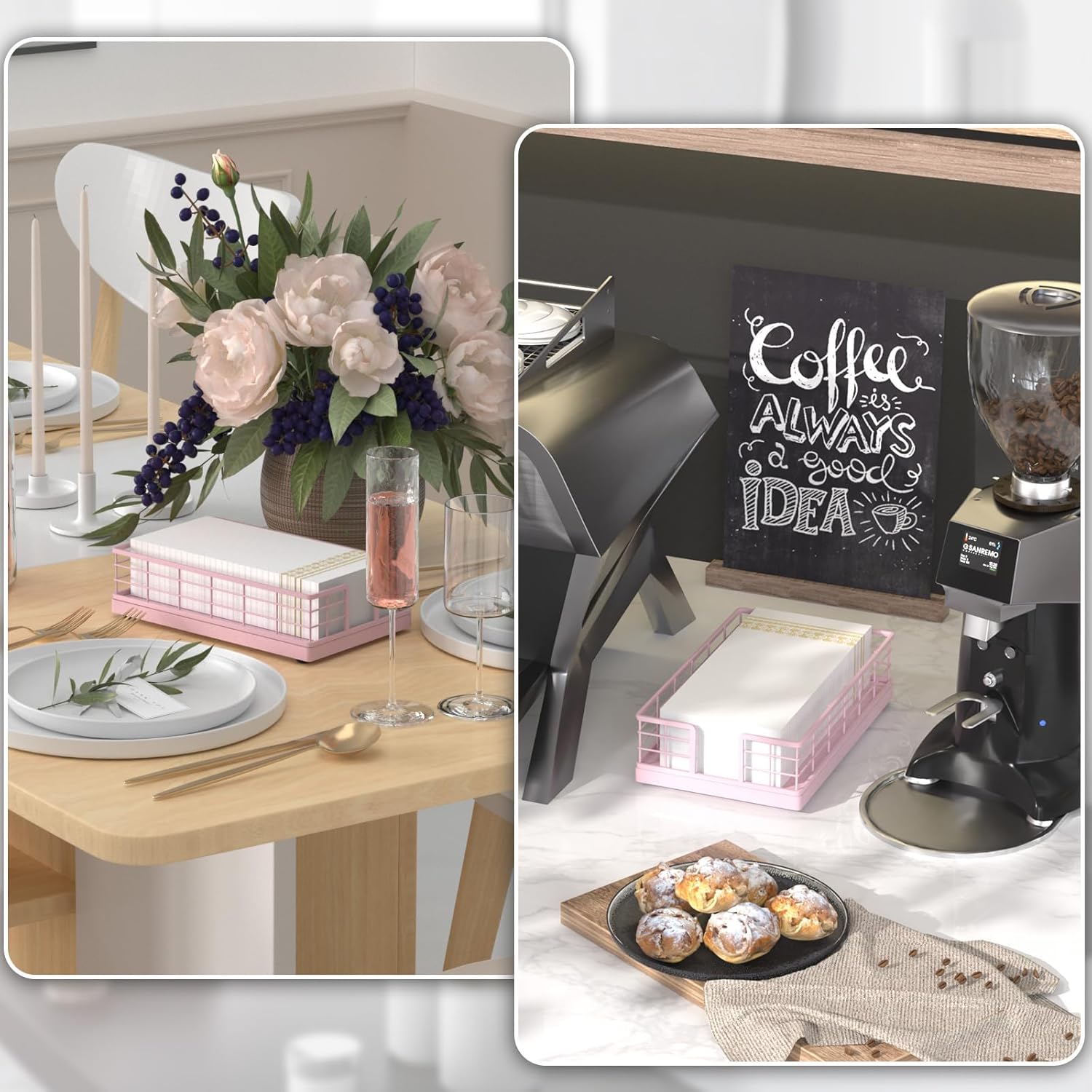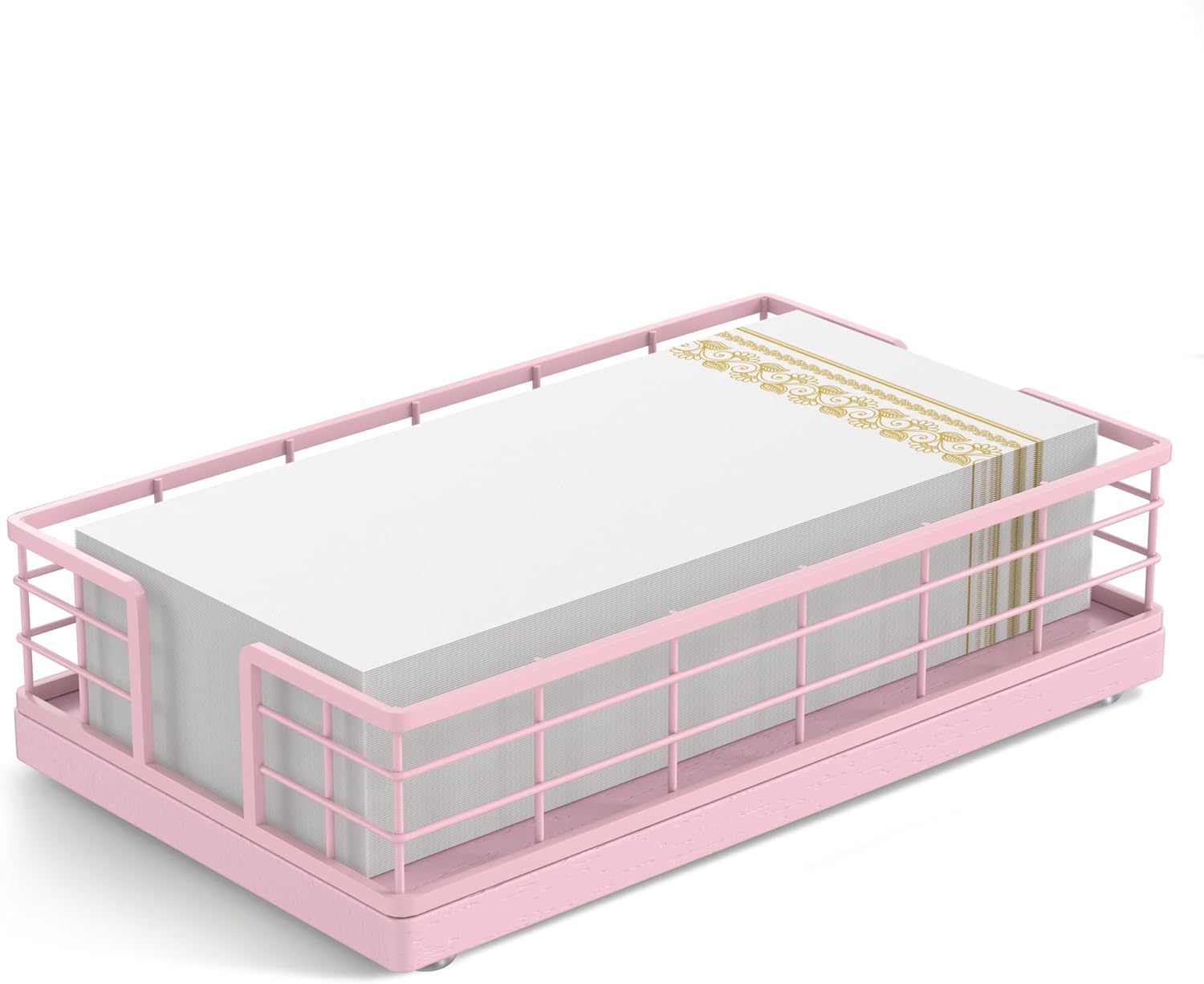 Wican Guest Towel Holder Tray for Bathroom, Oak and Iron Napkins Holder for Powder Room Dinning Table Wooden Basket for Disposable Paper Hand Towels Totally Pink