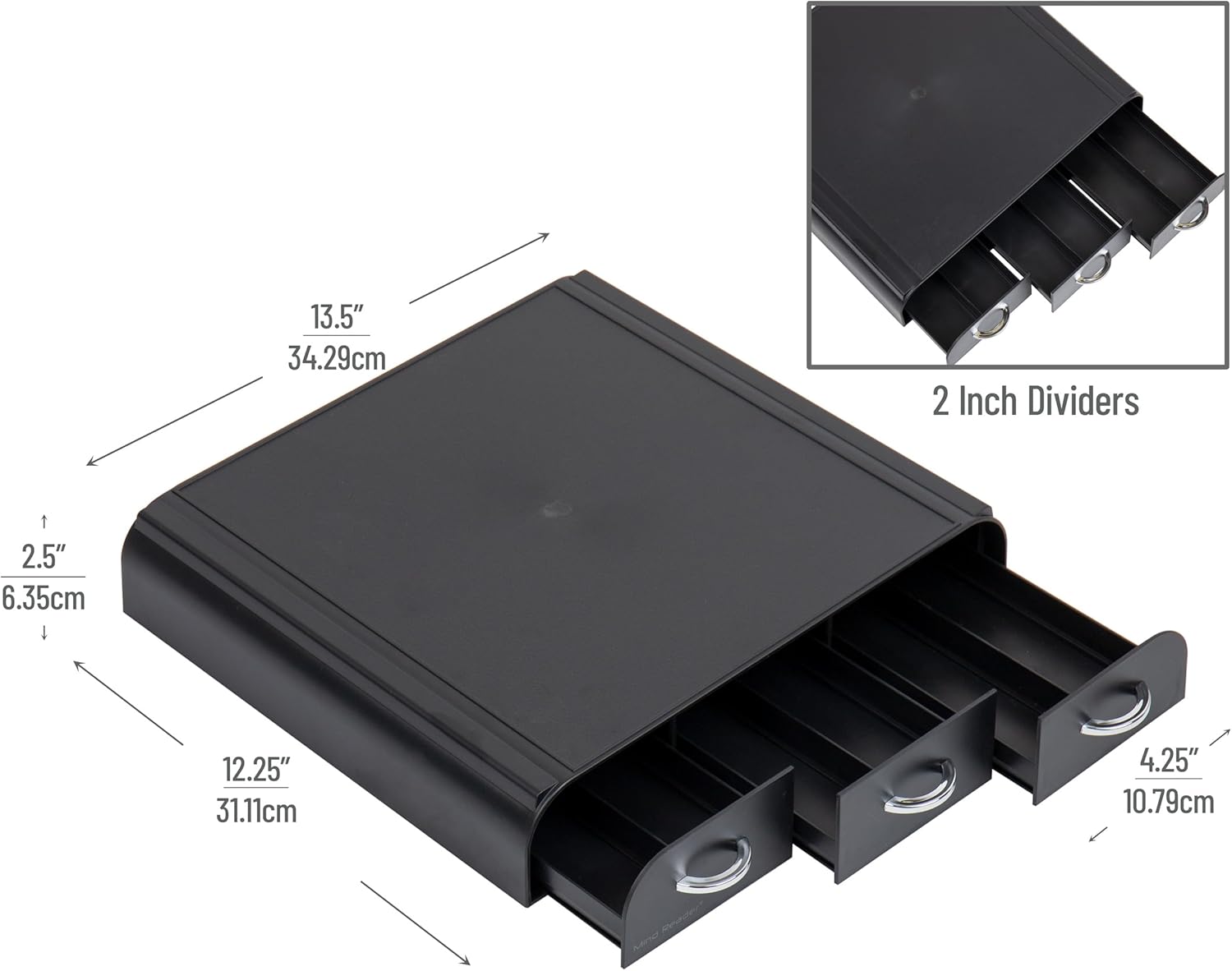 Mind Reader Single Serve Coffee Pod Organizer with 3 Drawers, 36 Pod Capacity, 13.5"L x 12.25"W x 2.5"H, Black (Pack of 8)