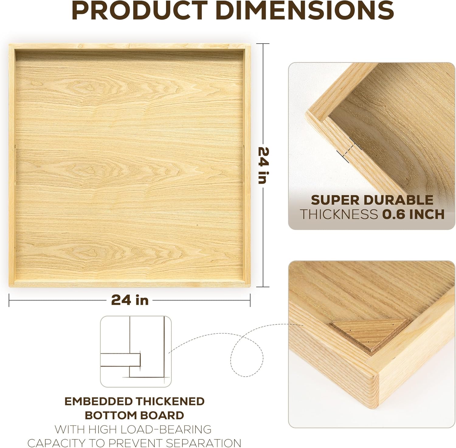 Axeman 24 Inch Large Square Wooden Ottoman Tray for Living Room|Extra Large Serving Tray with Handles for Coffee Table, Breakfast|Decorative Wood Tray for Ottoman Couch Sofa Kitchen|Natural