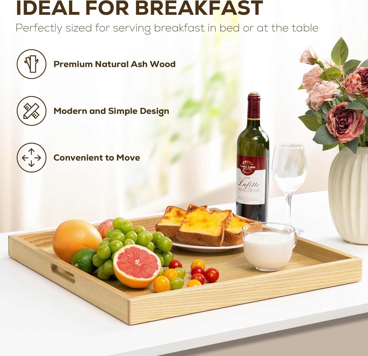 - Crafted from premium Ash wood, this large wooden tray boasts unique grain patterns and rich hues, making it both a beautiful and functional work of art for your home.
