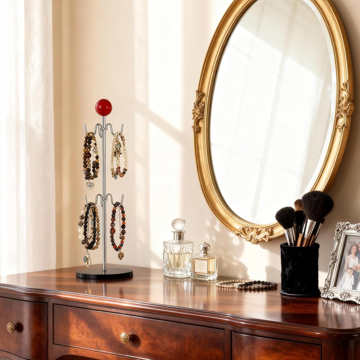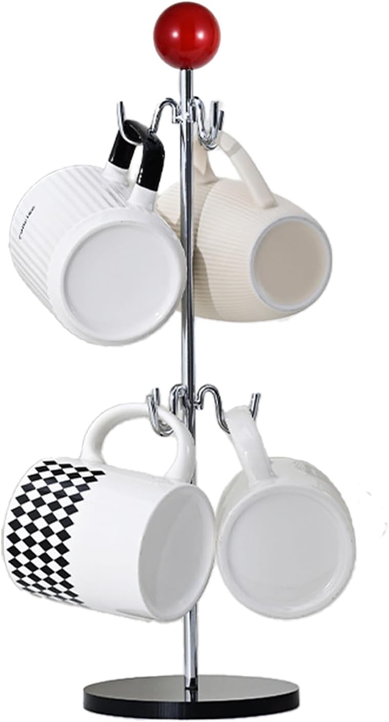 - Durable Electroplated Construction:Crafted with electroplated iron hooks and a central pole for rust resistance,this coffee mug organizer features a sealed wood ball and surfaces that resist stains,scratches, and wipe clean instantly