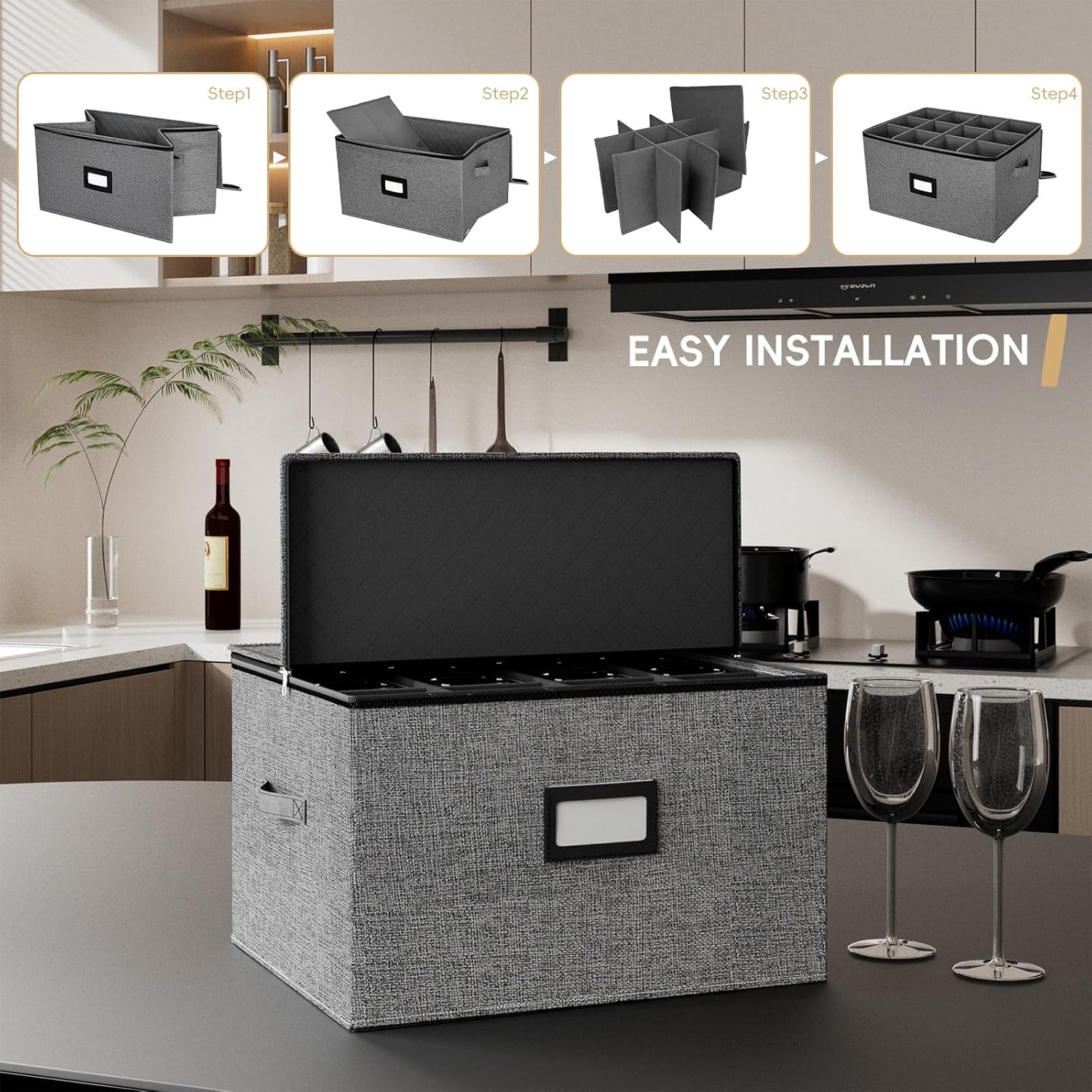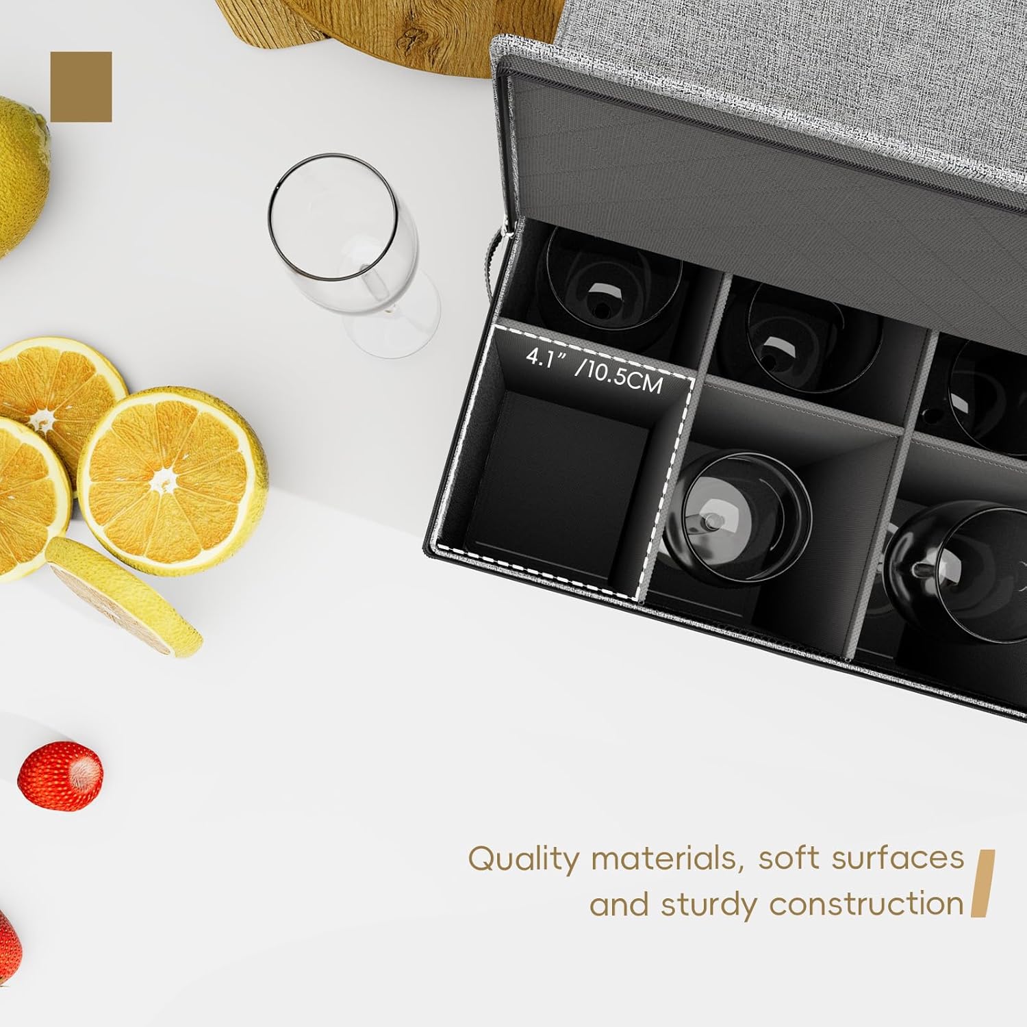 homyfort Wine Glass Storage Box, China Storage Containers with Dividers, Stemware Storage Case Holds 24 Wine Glass or long stem Crystal Glassware with Handles, Hard Shell and Stackable