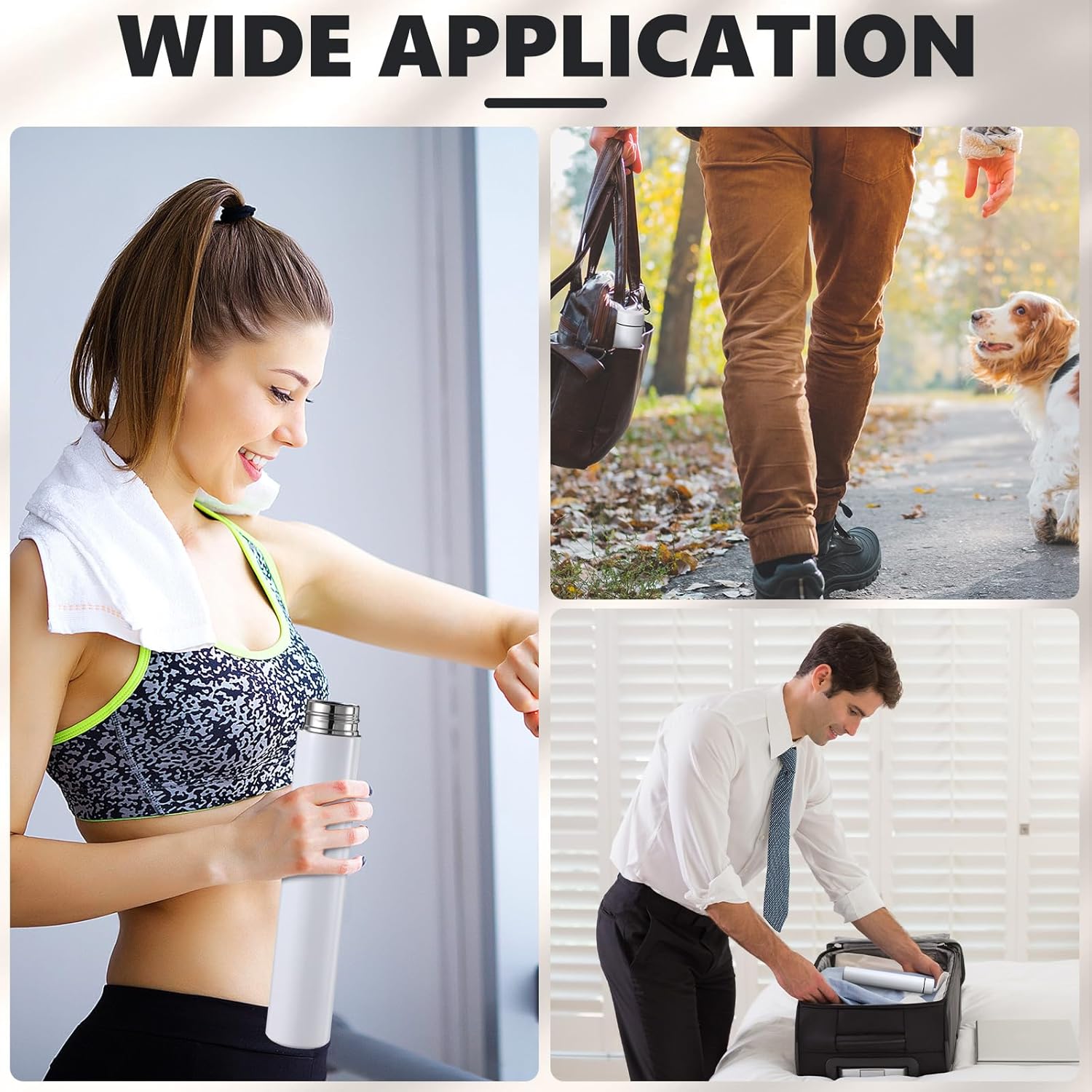 - Slim and Easy to Carry: our slim water bottle for purse is thin and long, you can hold it with one hand; You can easily put it into your backpack, lunch bag, handbag, purse, tote bag's side pockets, travel purse, women's purse, fishing pack, gym bag, or suitcase, so you won't need to use a disposable cup or another person's cup; We remind you to carefully check if the lid is tightened before placing it in your backpack