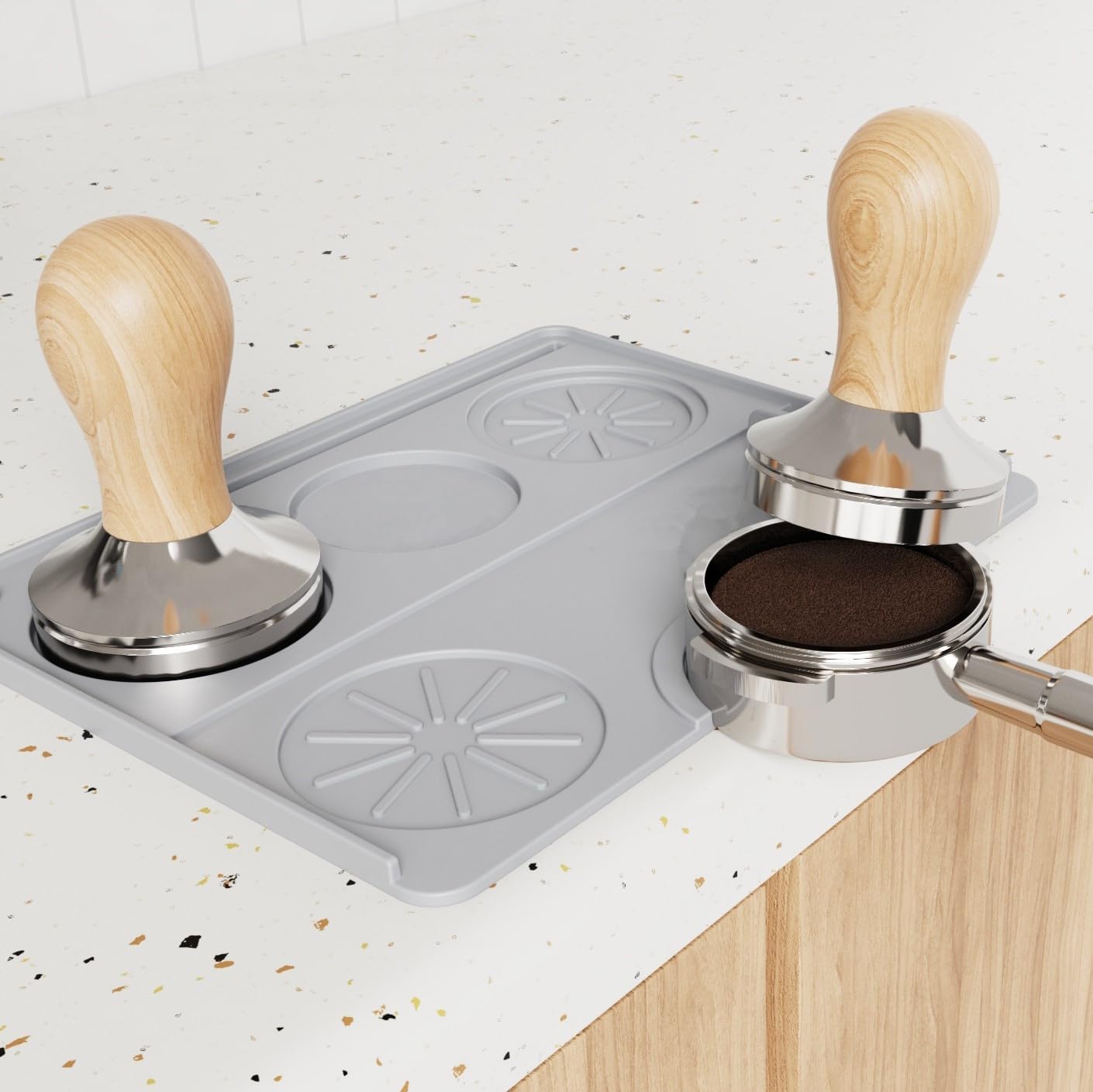 - ✿Smart Tamper Mat: Compatible with espresso accessories including tampers, distributors, portafilters, funnels, and puck screens—this tamp mat keeps everything organized and within reach while brewing.