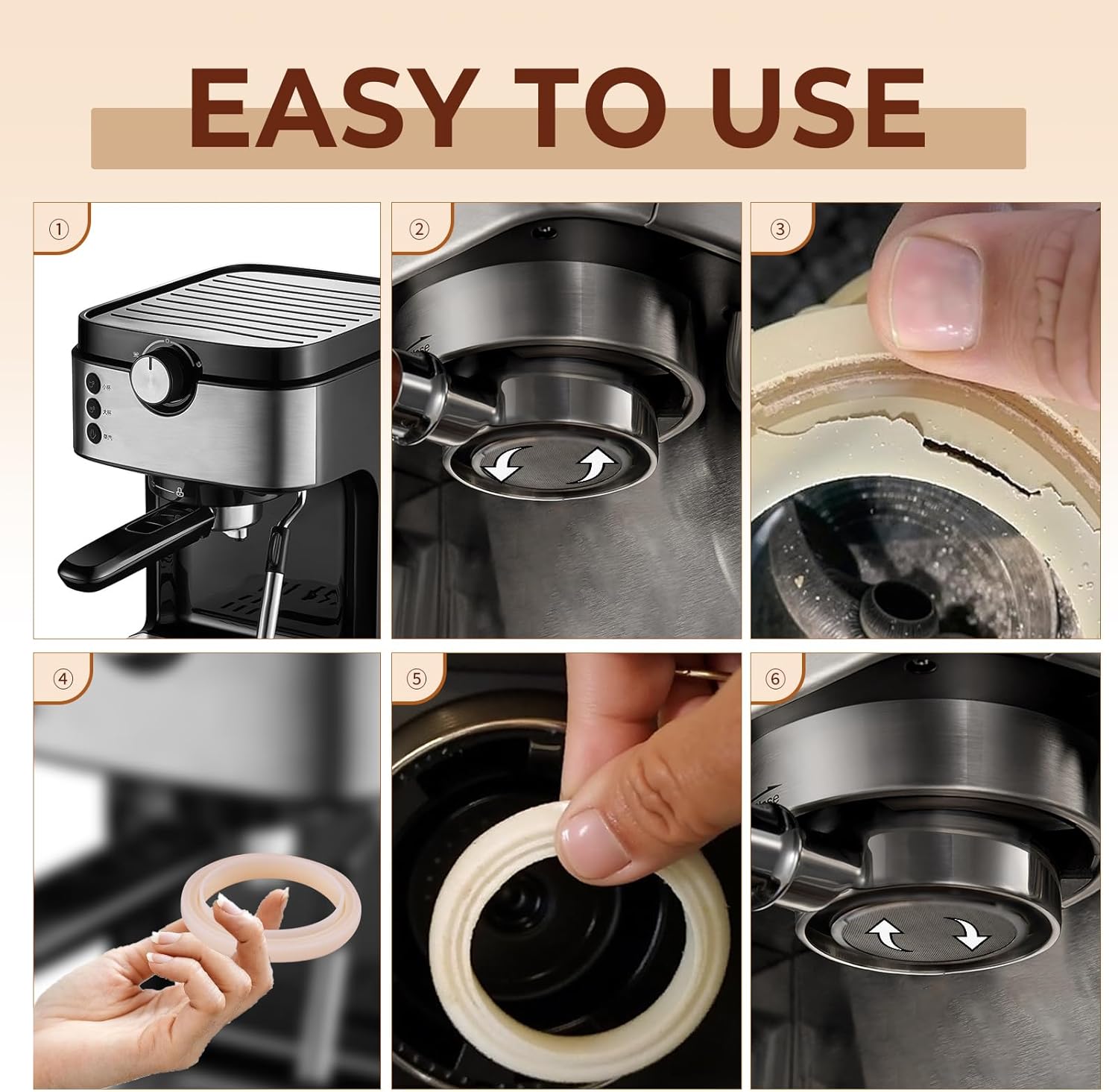 - Perfect Seal Guaranteed: The soft silicone material effortlessly fits into machine grooves, creating an airtight seal to prevent leaks. This ensures optimal pressure during brewing while reducing maintenance needs, delivering consistently great coffee every time.
