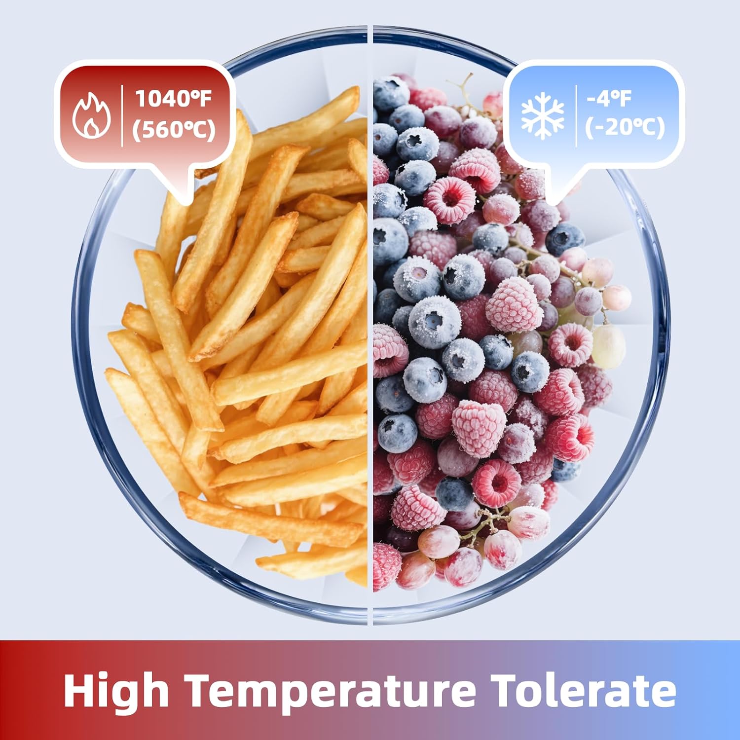 - 【Premium Food Grade Material】Bowls are made of high borosilicate material,thicker glass bowls, longer life span, lead & cadmium free, and tolerates -4℉-1040℉ (-20℃-560℃), access to microwave, oven, fridge, dishwasher. The lid is BPA free, safe and reliable, easy to clean