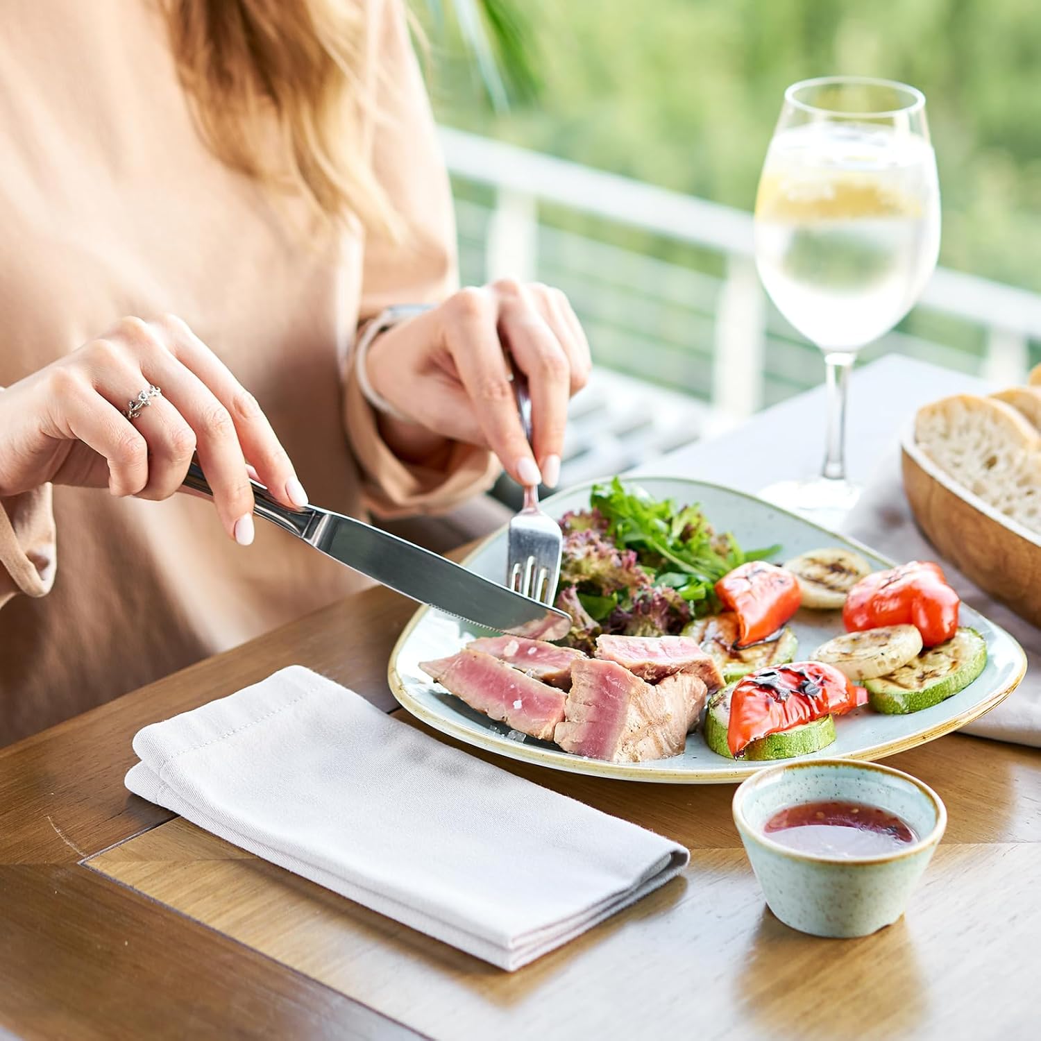 - Durable & Balanced – Sturdy stainless steel silverware that resists bending; well-balanced weight offers a steady, comfortable grip. Pairs with modern or classic tableware.