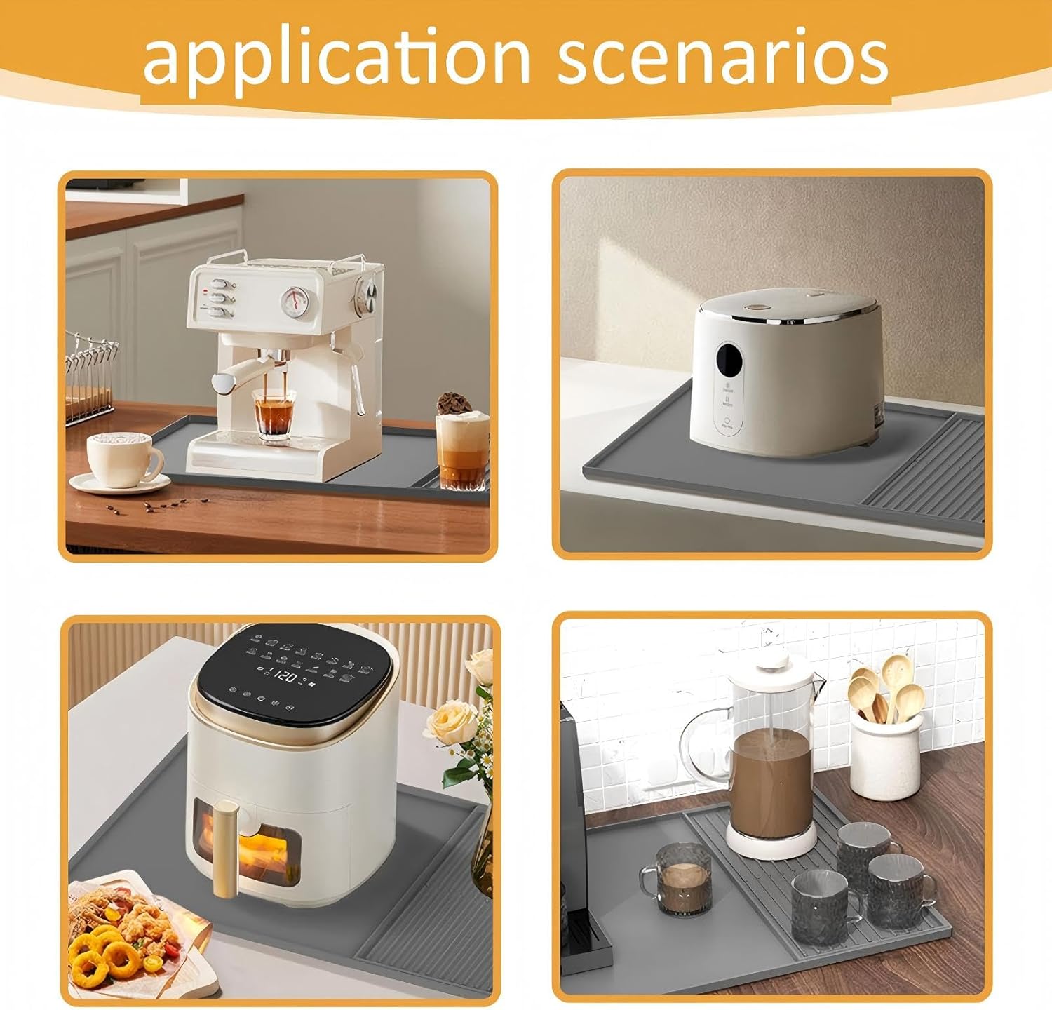 Silicone Coffee Pad, 24-inch x 16-inch Mat, with Removable Baking Tray, Fits Coffee Machines and Baking Sheets, Black