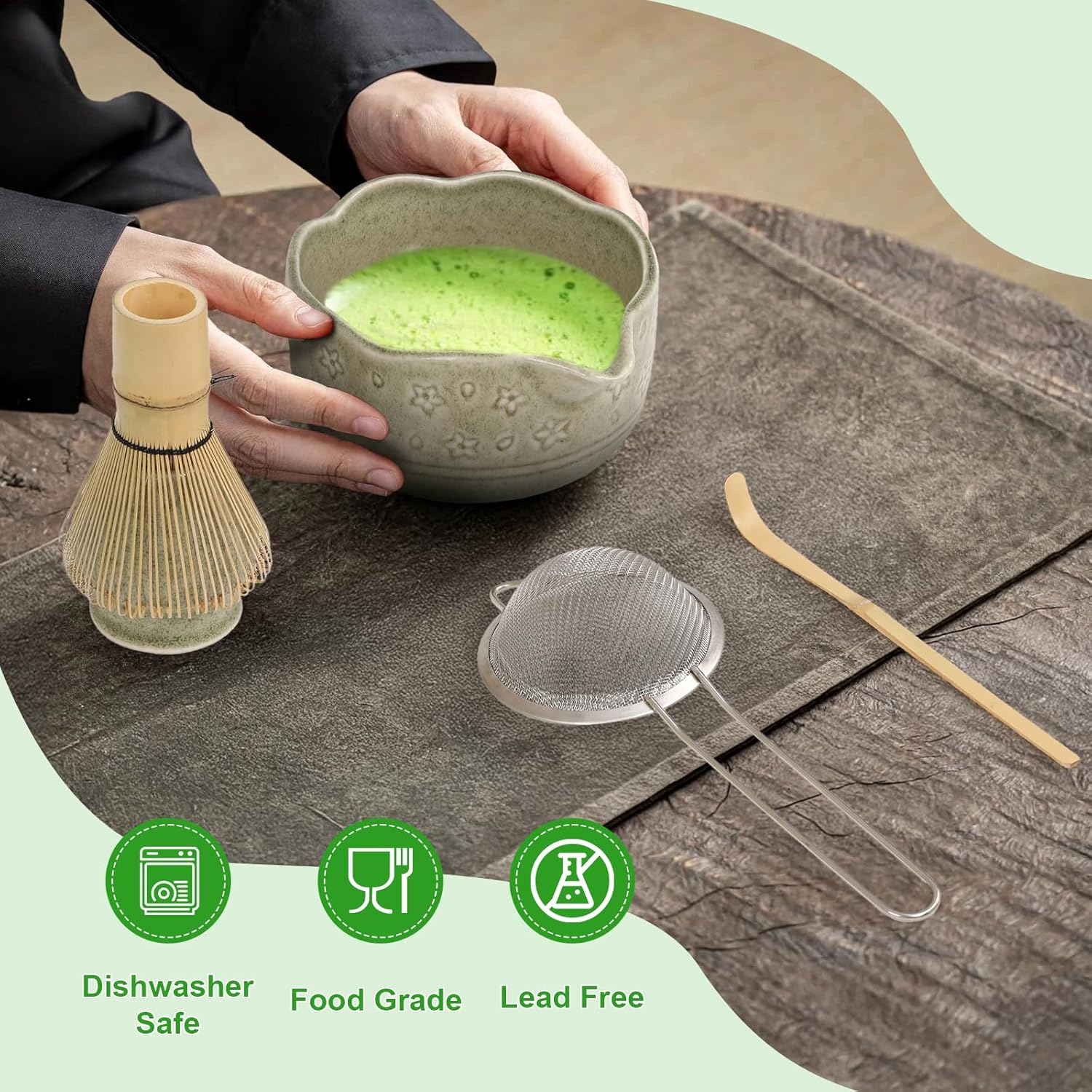 Premium Matcha Whisk Set - 6Pcs Japanese Tea Ceremony Kit with Ceramic Matcha Bowl and Whisk, Bamboo Scoop, Whisk Holder, Stainless Sifter, Birthday Christmas Gift for Matcha Lover