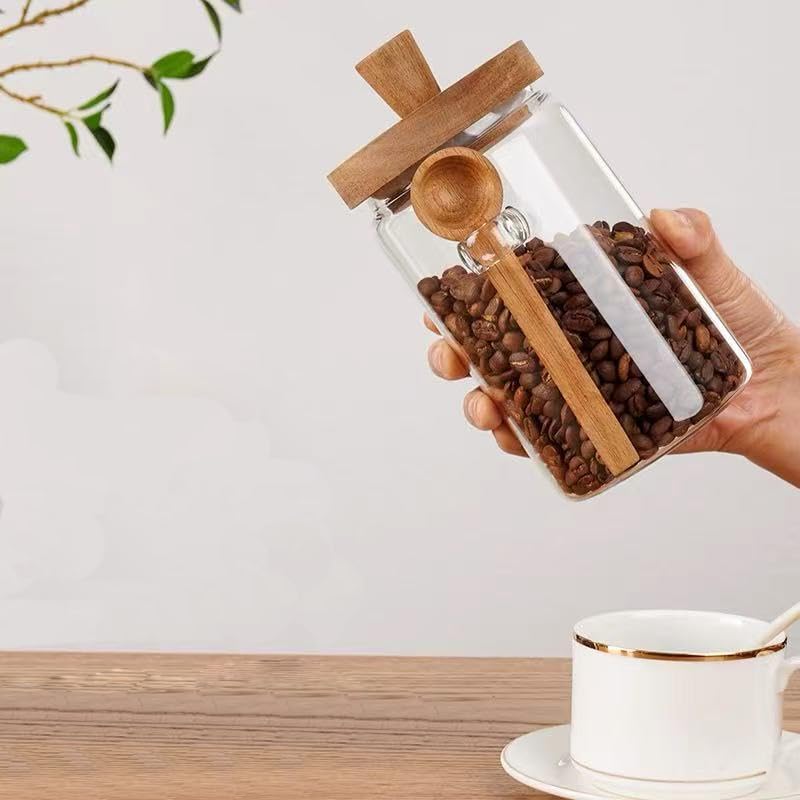 - Glass Jars with Wooden Lid & Built-in Spoon: The Glass Jars integrated spoon holder keeps your spoon clean, organized, and always within reach—no more searching through drawers! Just lift the spoon from its dedicated slot for quick, mess-free access to ingredients. In addition, the lids are easy-grip handle for comfortable opening and airtight freshness.