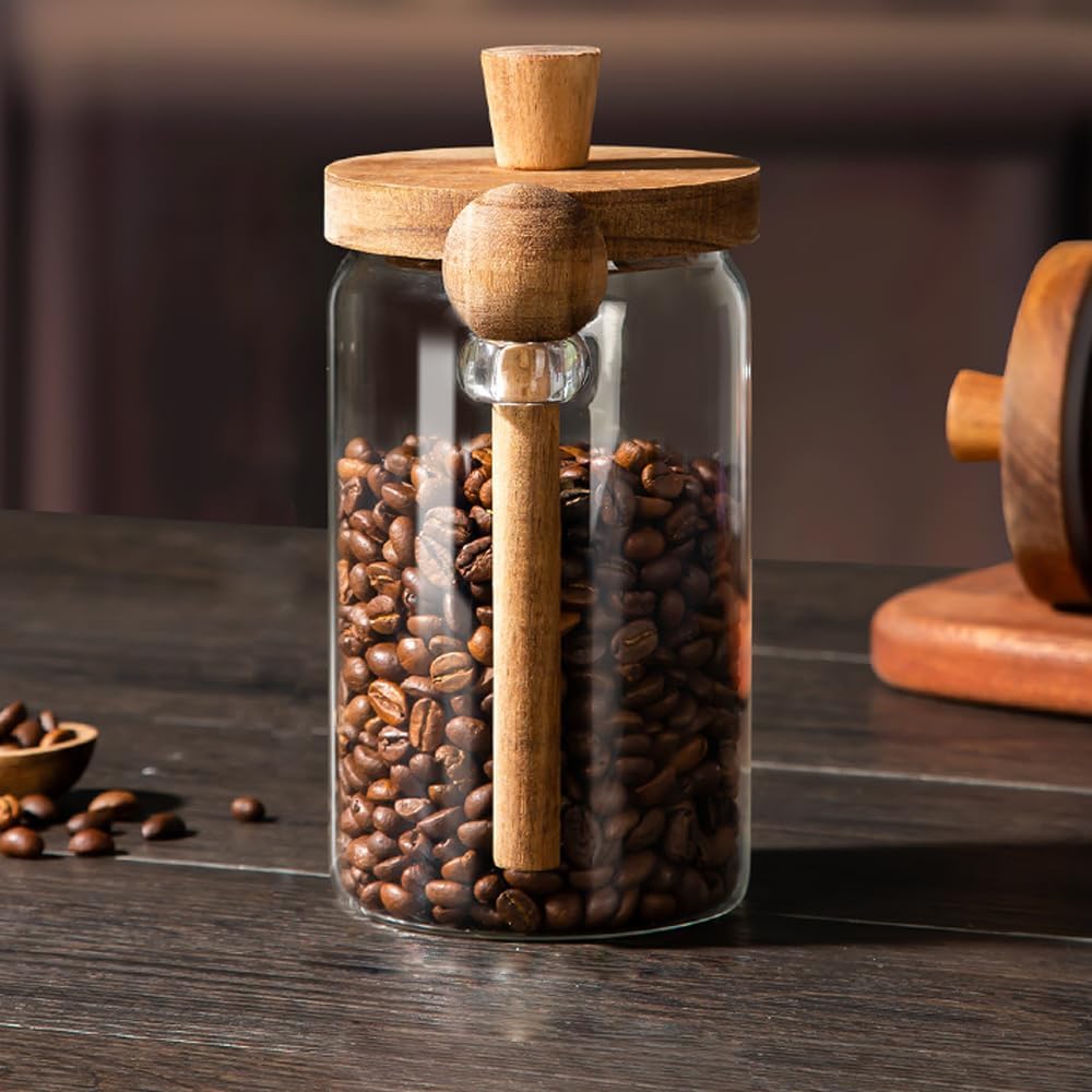 - Clear Glass Canisters: The package comes with the glass canisters with wooden lids and spoons,750ml/25 oz, 9 x 15 cm/ 3.54 x 5.9 inches, which are useful for you for organizing and storing powdery and granular food in kitchen, like coffee beans, teas, spices, and more
