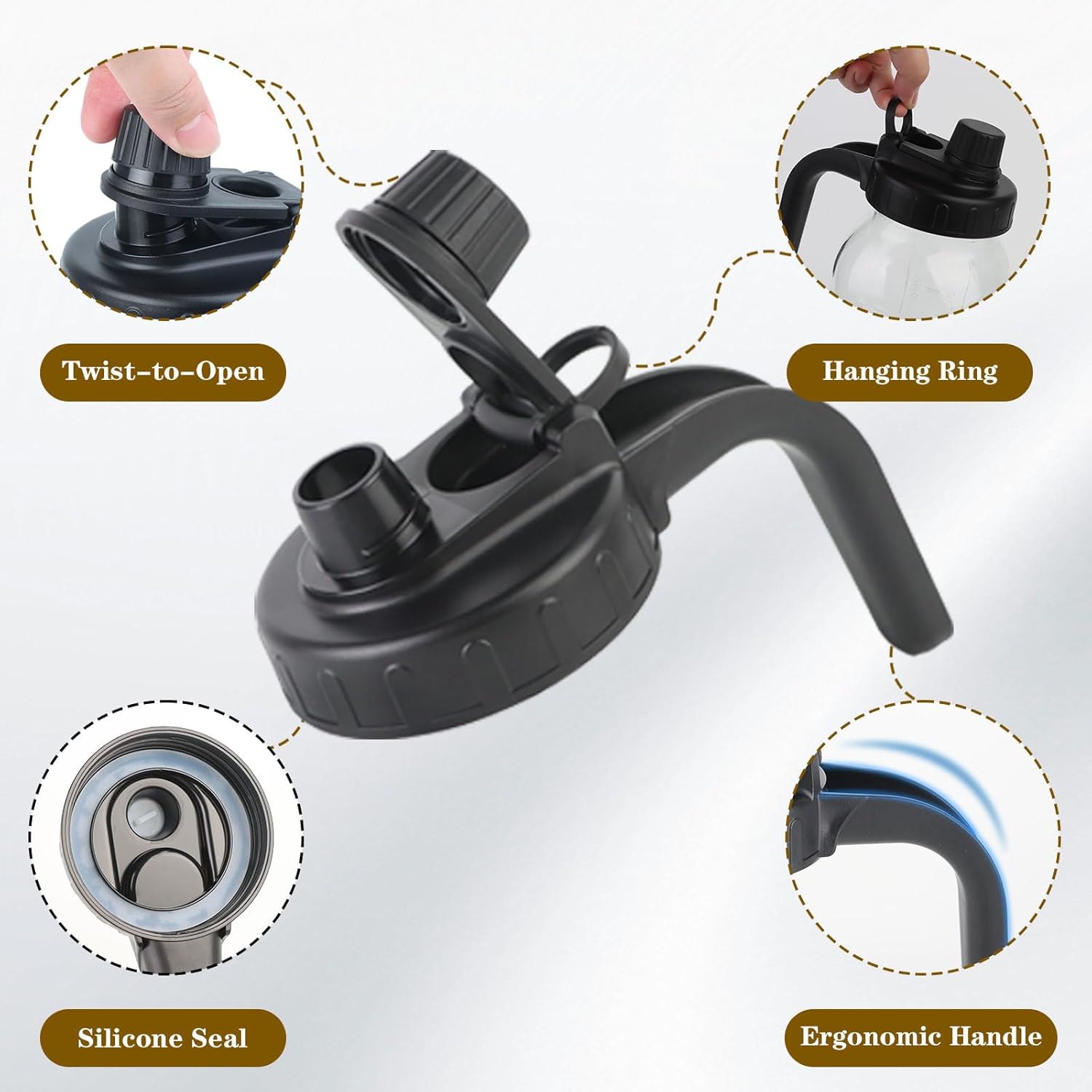 - ERGONOMIC HANDLE: The lid is designed with a secure grip handle, perfectly shaped to fit in your hand, providing stability and comfort during pouring. Its ergonomic design reduces the risk of accidental slips and spills, ensuring a safe and effortless serving experience