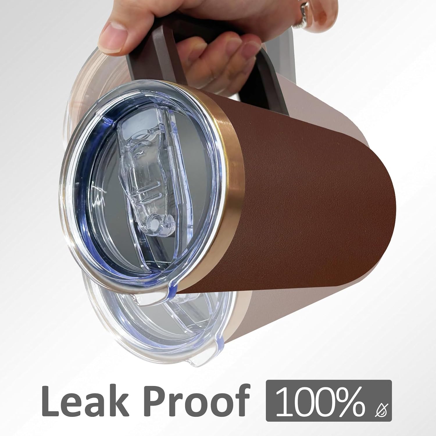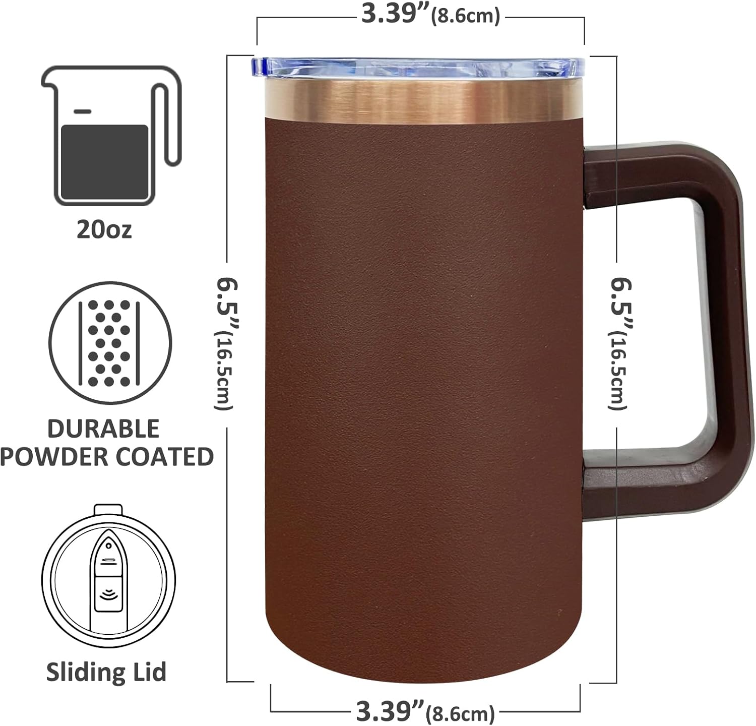 20 oz Insulated Coffee Mug with Lid, Stainless Steel Coffee Tumbler Bulk, Double Wall Vacuum Travel Mug with Handle, Leakproof Powder Coated Coffee Cups for Hot and Cold Drinks (Brown,1 pack)