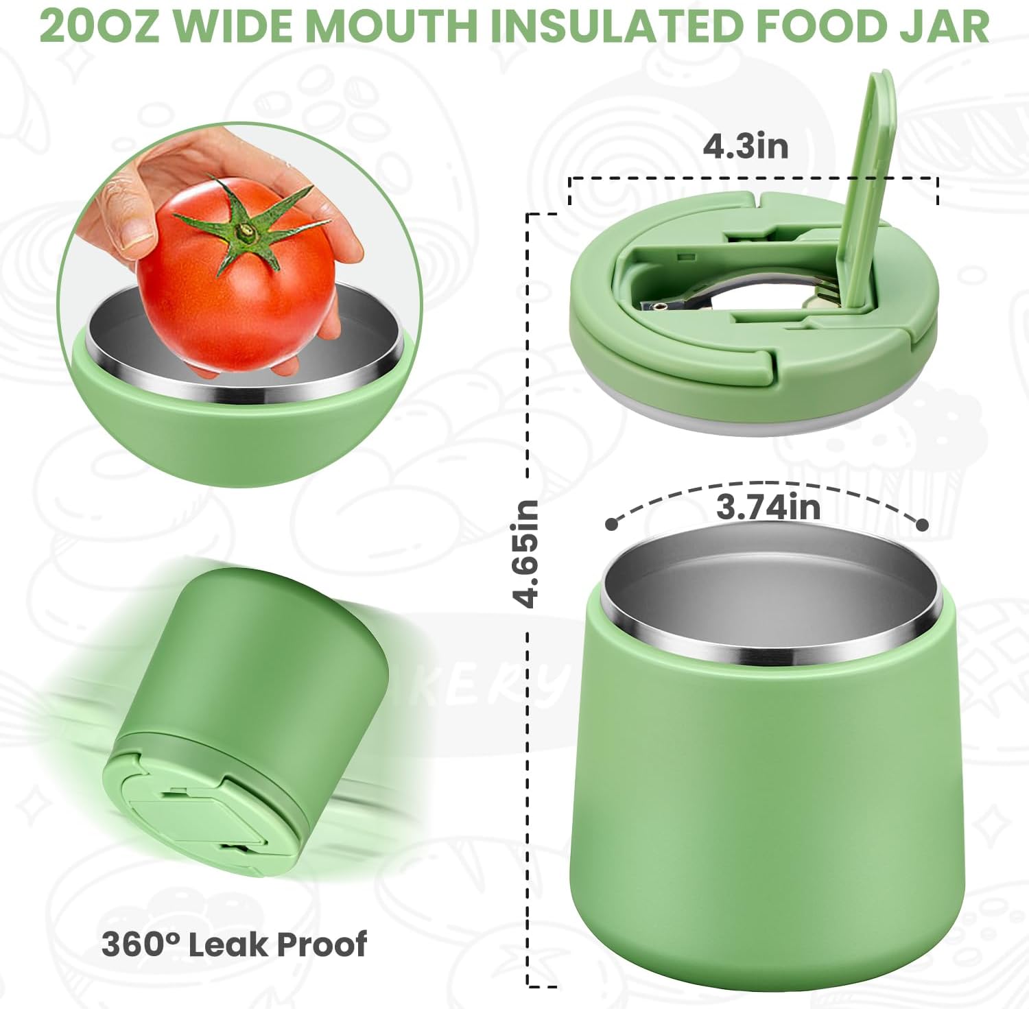 - Wide Mouth Design: 20 oz, 3.74 inches Wide mouth design allows food to fit more easily into the jar and allows for easier cleaning of the inside of the jar. Hand washing of soup thermo containers is recommended to extend product life and keep the pattern on the outside of the product longer.