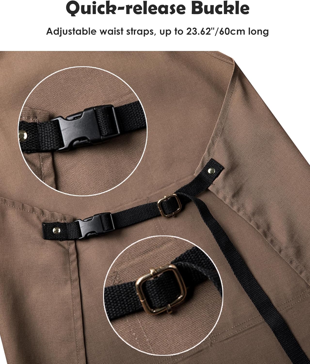 • Quick-release Buckle: Adjustable waist straps, up to 23.6"/60cm long; Quick-release buckle design for easy on and off