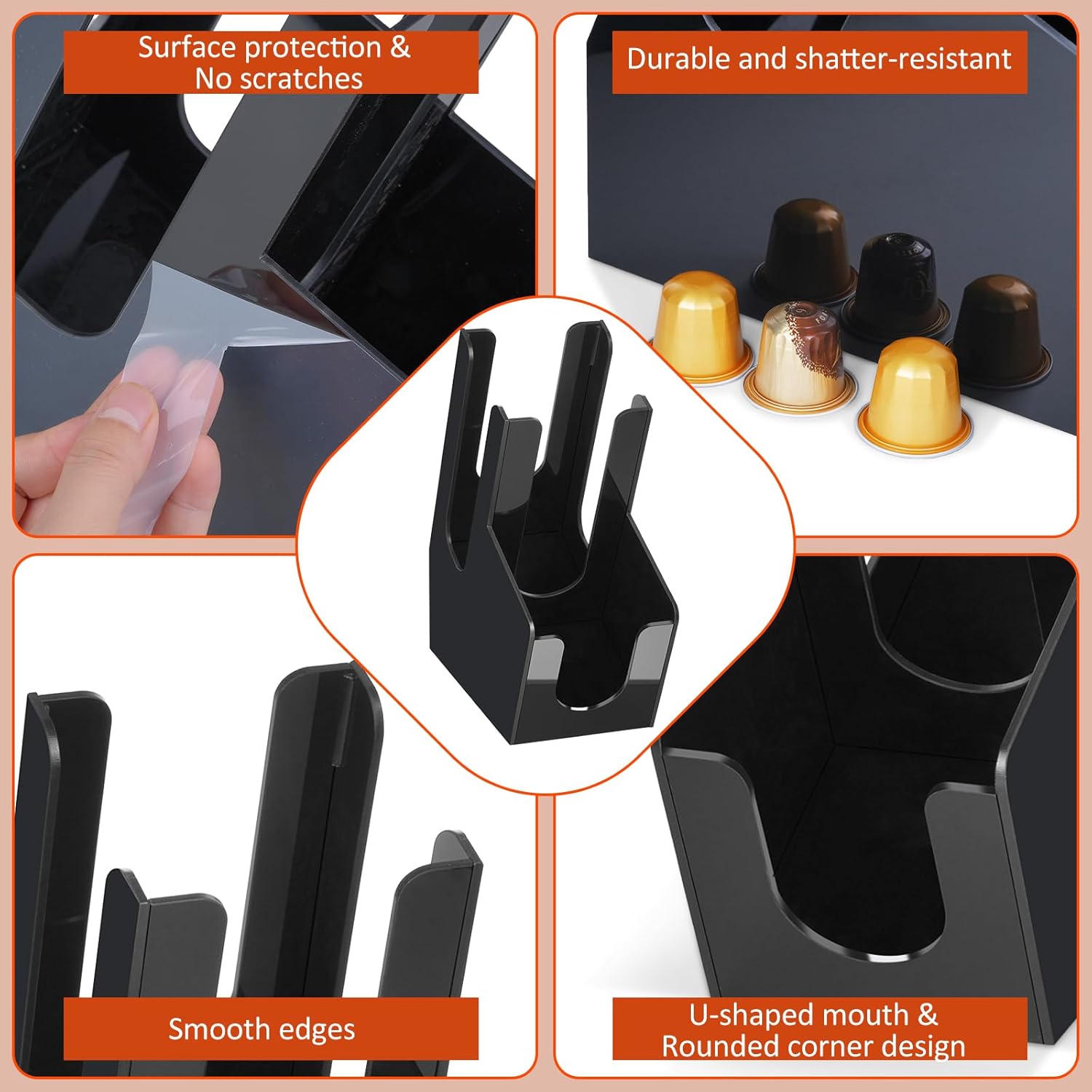 - UPGRADED MATERIAL: Coffee cup holder is made of thickened acrylic, which is harder than ordinary plastic, not easy to break or deform, and can be used for a long time. The surface of Coffee bar accessories is coated with food grade coating, you can safely put coffee accessories in the box. The surface of Coffee bar organizer is round and smooth, finely polished, no tingling feeling, and can be easily cleaned with a damp cloth.