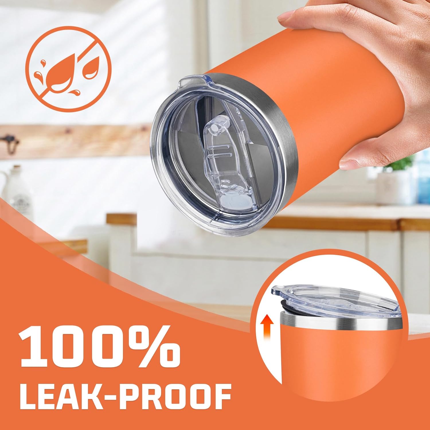 - ✅ 𝐁𝐏𝐀-𝐅𝐑𝐄𝐄 𝐚𝐧𝐝 𝐋𝐞𝐚𝐤-𝐩𝐫𝐨𝐨𝐟 𝐋𝐢𝐝: The 20 oz insulated coffee mug is equipped with a sliding lid which is BPA-free and healthy and the seal ring of the lid fits snugly into the mouth of the cup. When the sliding lid is closed, you don't have to worry about spilling your drink, even if the coffee tumbler is accidentally tilted.Our 20oz tumbler with lid for your daily or travel drinking needs, always hydrated.