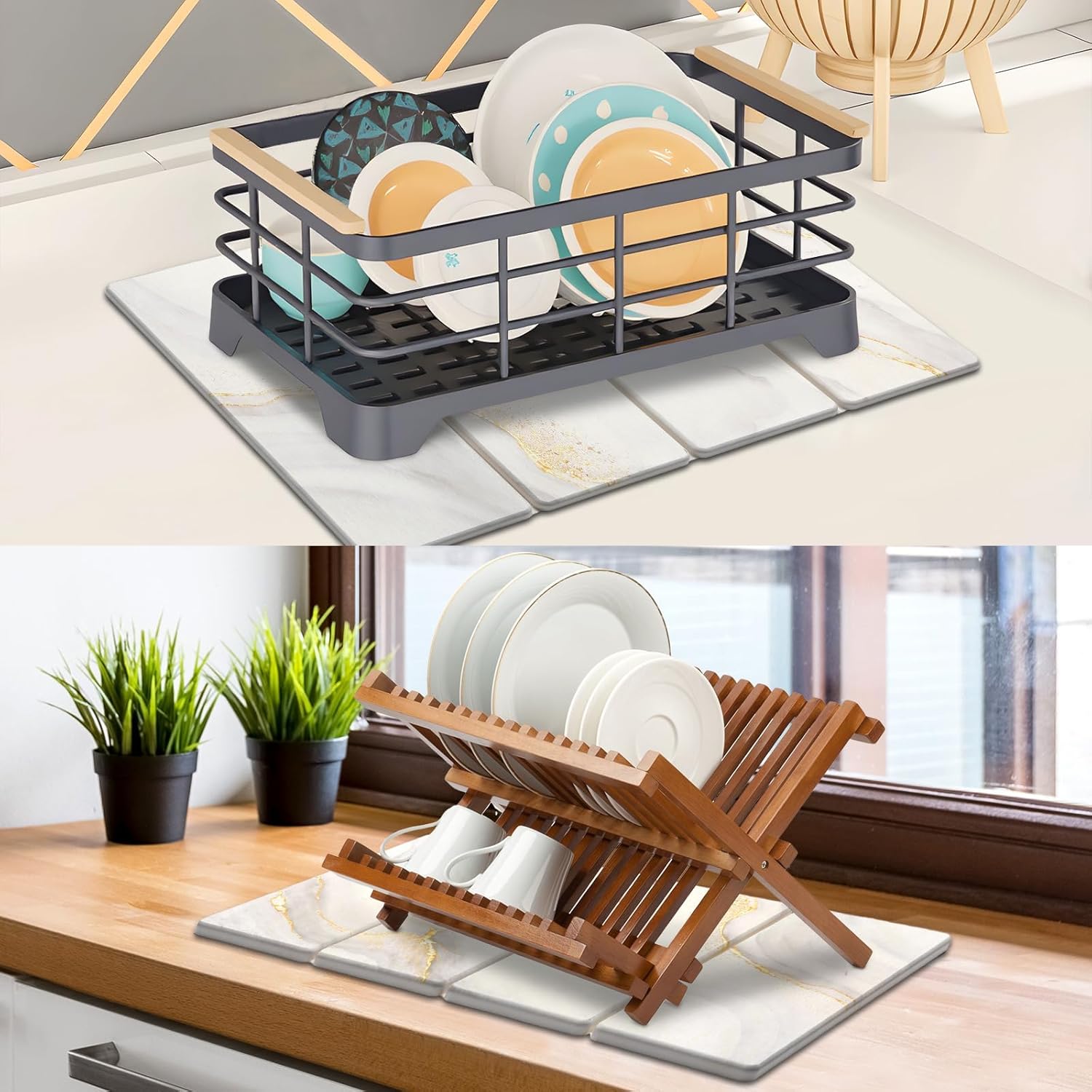 - 【Quick Dry & Super Absorbent】Crafted from diatomaceous earth, each dish drying mat rapidly absorbs water from dishes, bottles, utensils, and countertops. Ideal for busy kitchens, the quick dry stone mat kitchen surface keeps your sink area dry and tidy—no more puddles or soggy towels.