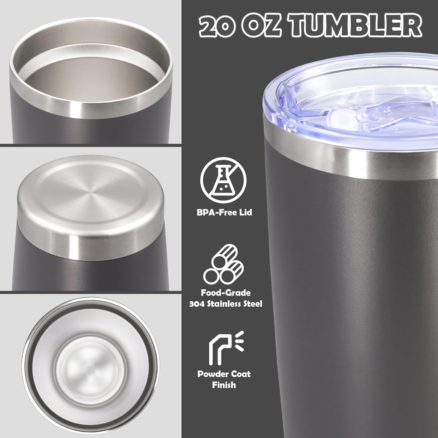 20oz Tumbler Stainless Steel Tumbler Cup with Lid Vacuum Insulated Double Wall Travel Mug, Durable Powder Coated Travel Coffee Tumbler Mug for Hot & Cold Drinks, Grey,1 Pack
