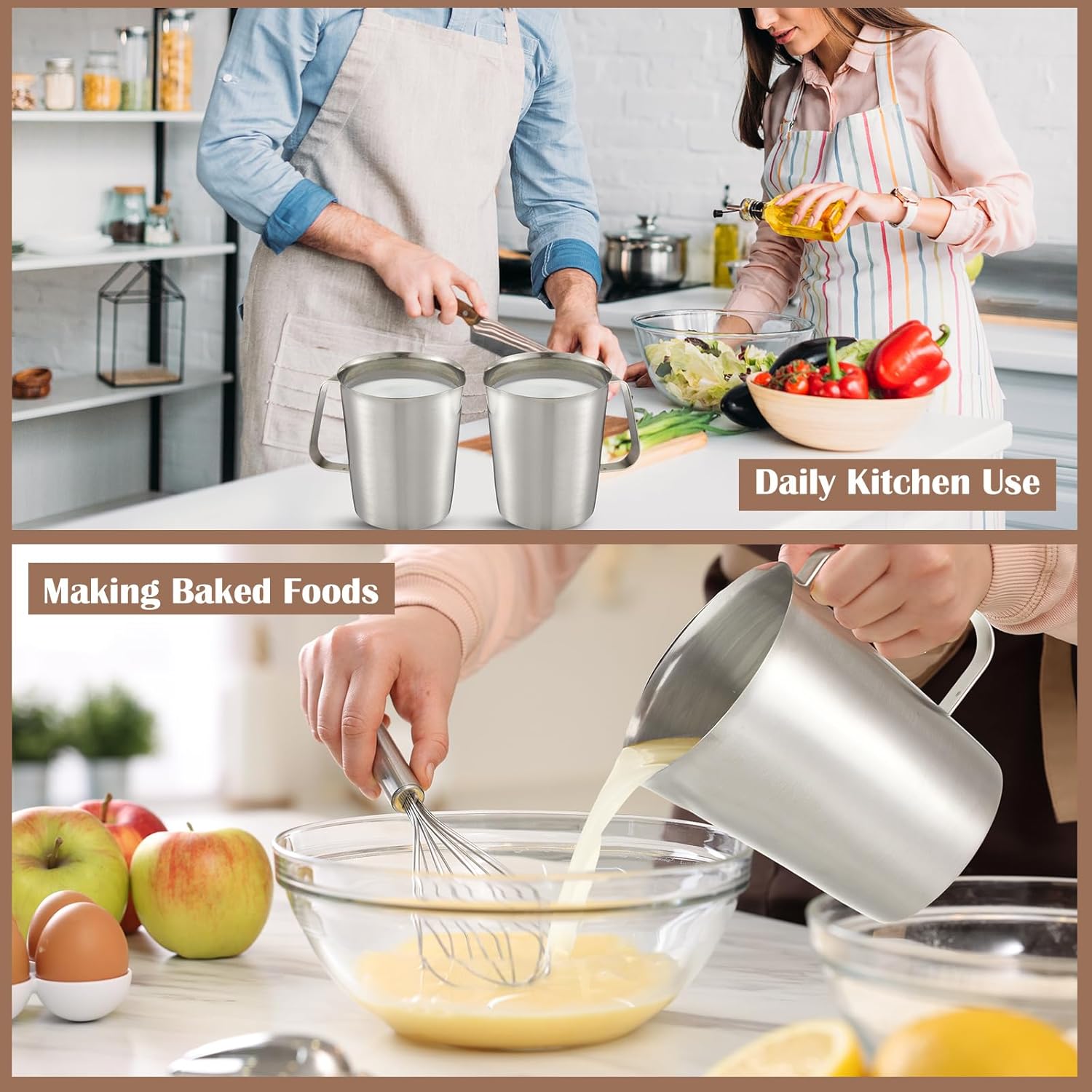 - Trustworthy quality: these measuring cups with ml markings are made of quality stainless steel, featuring sturdy and solid construction, unbreakable and serviceable, there is no need to worry about they will break by dropping accidentally, you can use them with confidence