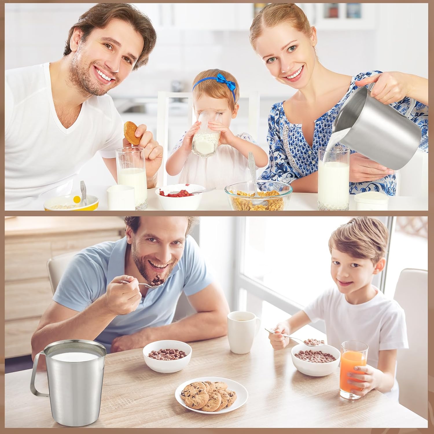 Flutesan 3 Pcs Stainless Steel Measuring Cups Measuring Pitcher with Handle with Markings for Latte Art, Water Pouring 6 Cup (50 oz)