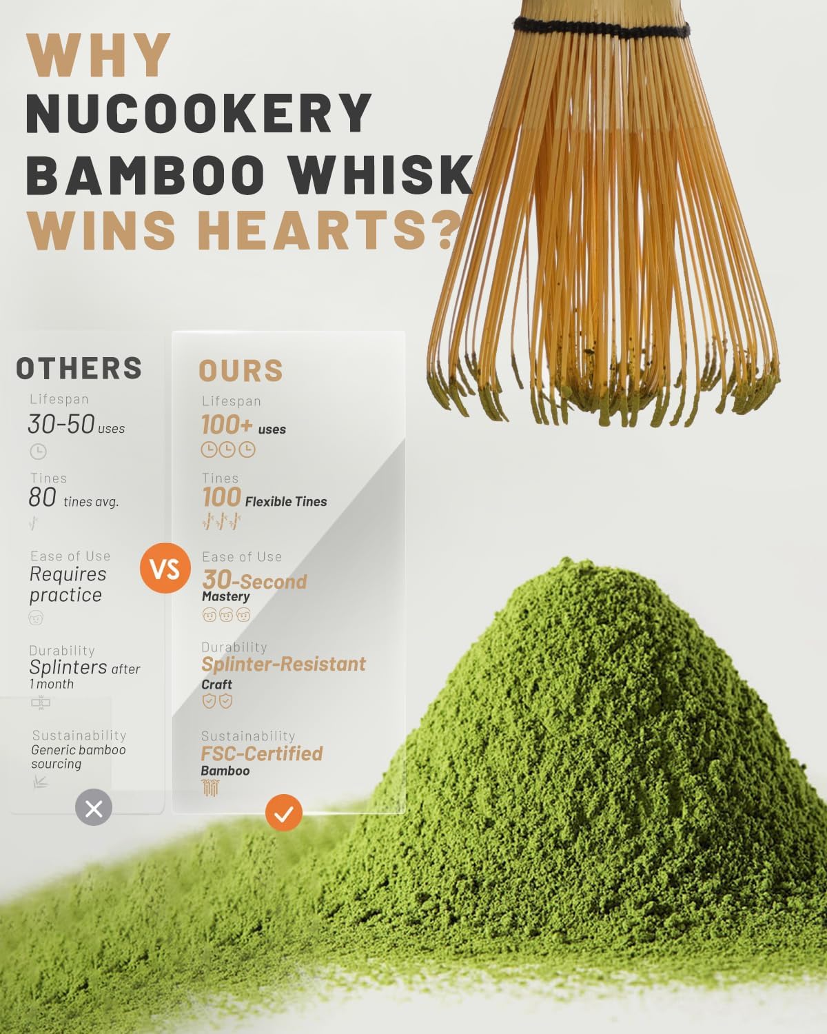 - 🍵【Timeless Craftsmanship, Thoughtful Gifting】At the heart of this set lies a premium bamboo whisk, its 100 fine tines engineered for perfect frothing, paired with an exquisitely carved bamboo scoop. Encased in elegant packaging and crafted from the finest materials, this collection transcends mere utility—it's a timeless gift, a celebration of tradition and modernity, perfect for holidays, milestones, or moments that deserve a touch of sophistication.