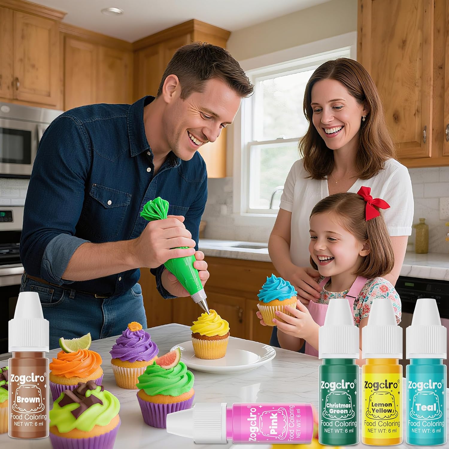 - Food Grade Safe: Our food coloring liquid set is made from food-grade materials, ensuring safety for all your baking needs. The colorantes para reposteria doesn't have eggs, dairy, nuts, peanuts, and gluten, this tasteless concentrated food dye is perfect for cake decorating and can be safely consumed by everyone, including vegetarians.