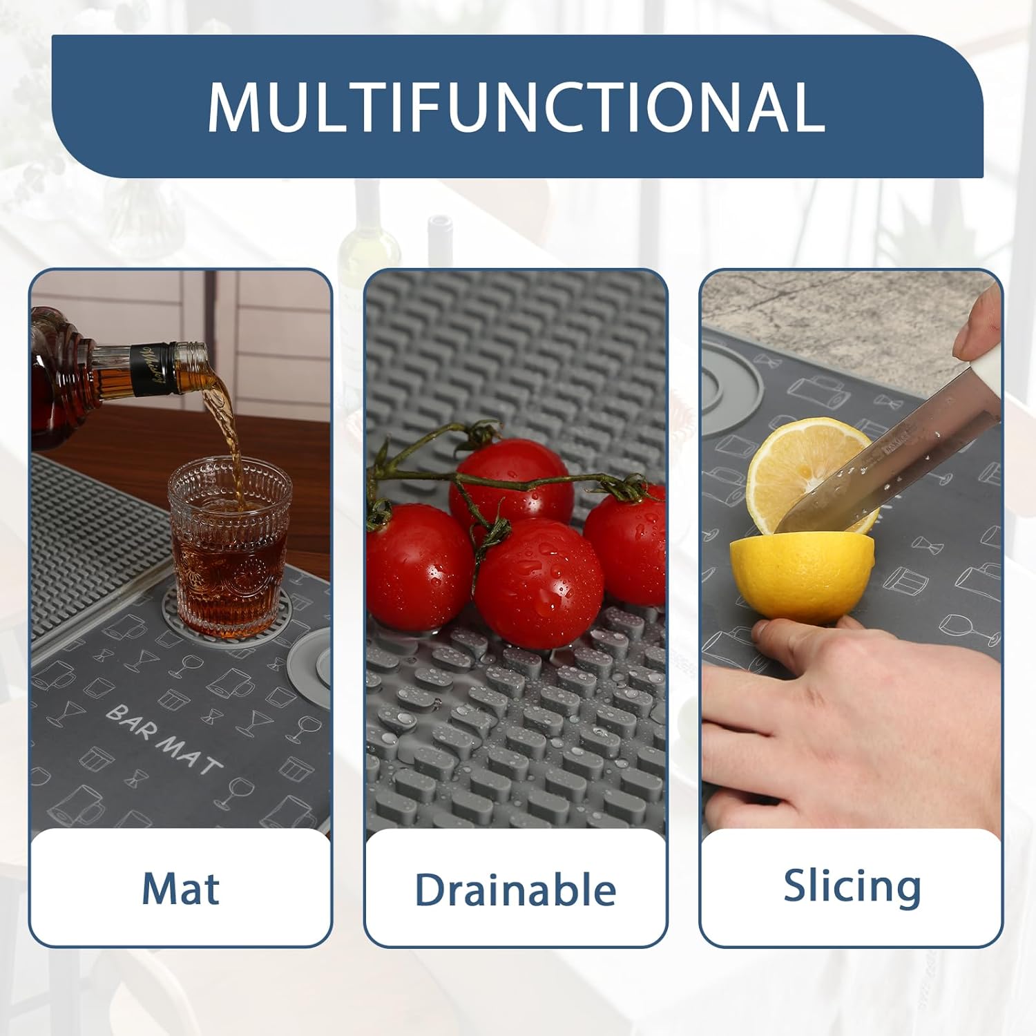 - 🚀 UNFOLD PROFESSIONAL BARTENDING ANYWHERE: This versatile 3-in-1 silicone mat combines a spill-catching drying mat, a removable cutting board for garnishes/fruit, and an integrated rimmed tray for perfect salt/sugar glass rims. Instantly create a dedicated, mess-free cocktail station on any countertop!
