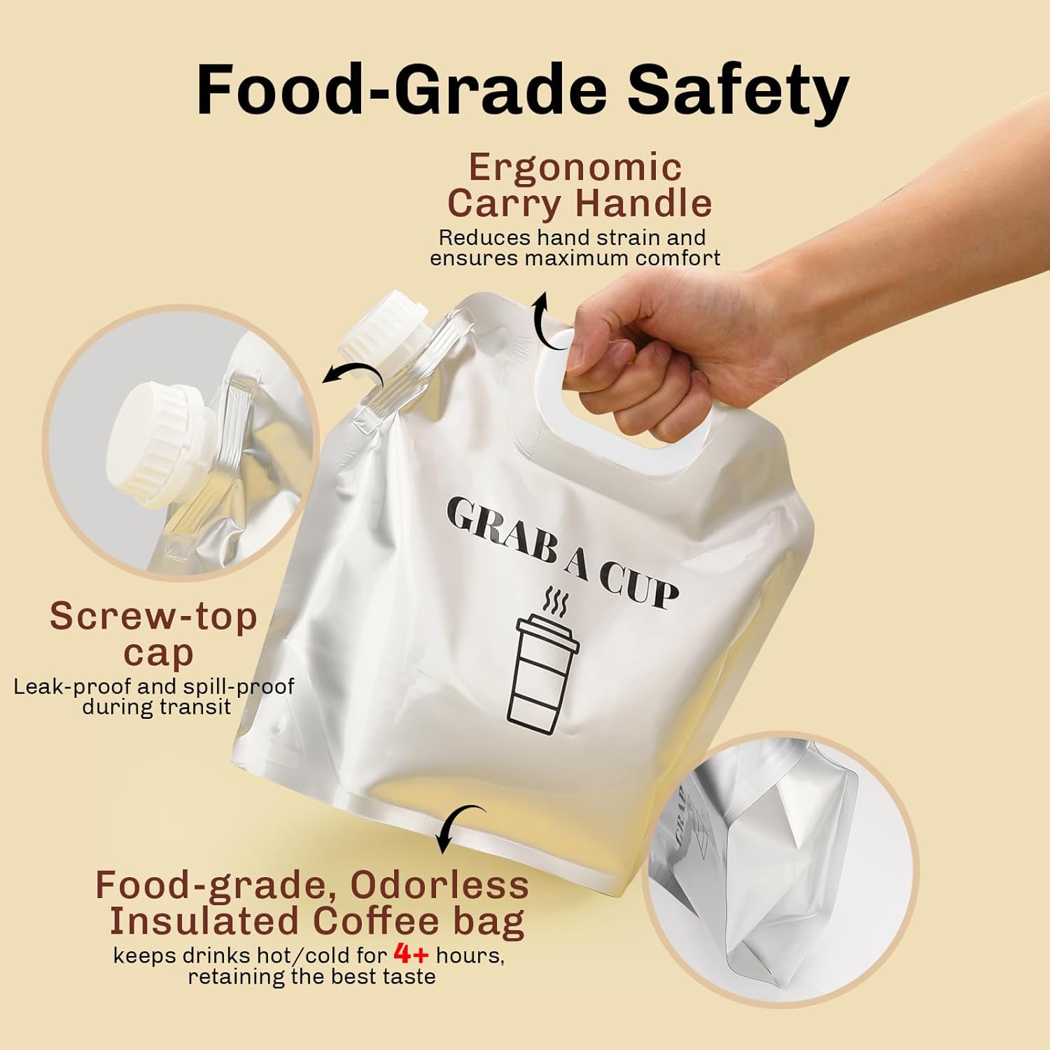 - Food Service Quality - Made from food-grade components, our coffee drink carrier with handle is expertly crafted to preserve the rich, smooth flavor of your favorite coffee. Enjoy a premium coffee experience anywhere