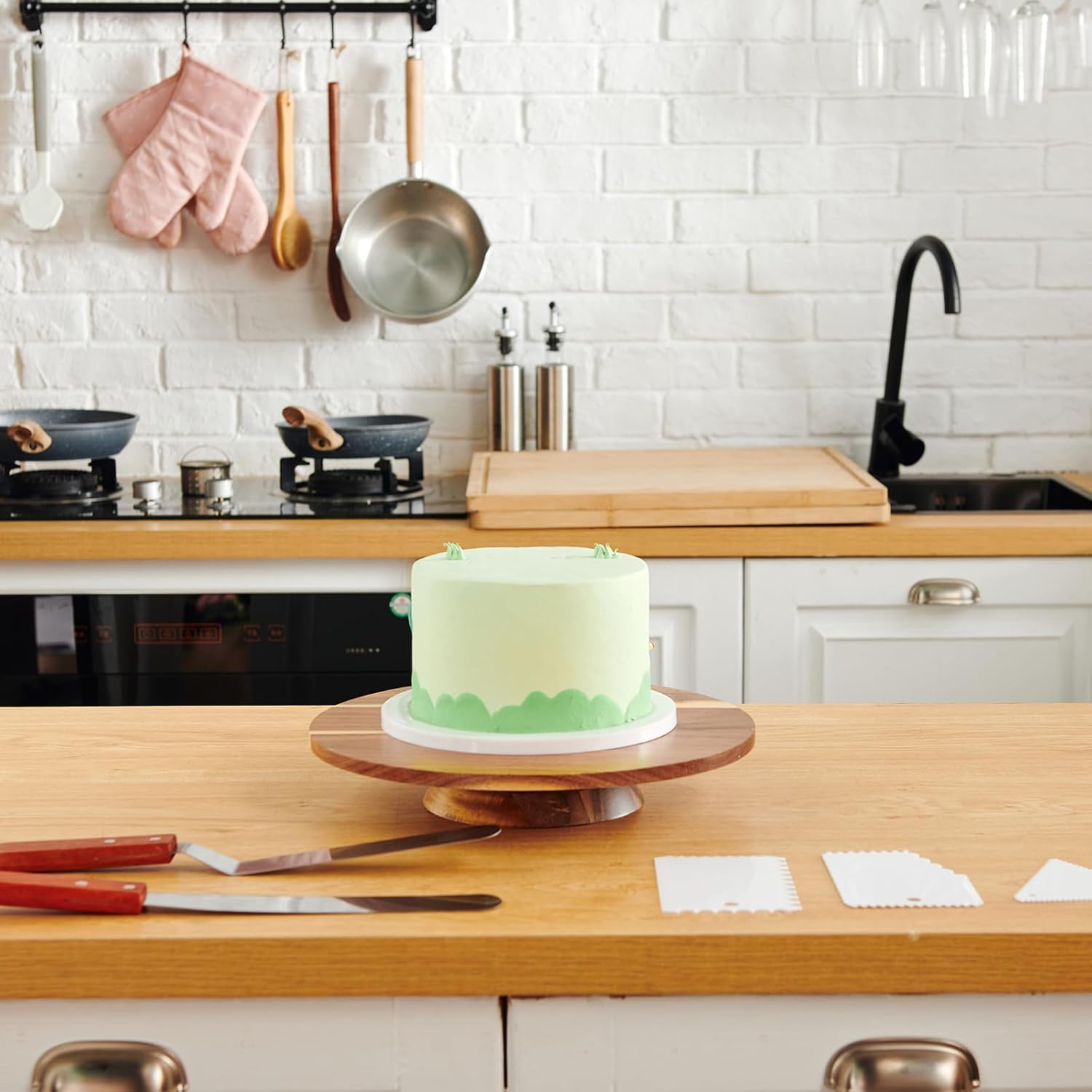 - Rotating Cake Turntable: this sturdy turntable features a smooth natural wood surface that allows easy rotation for even frosting application and precise decorations from all angles; It perfectly combines aesthetics with functionality; The bidirectional rotation design makes it easy to use for both right-handed and left-handed decorators