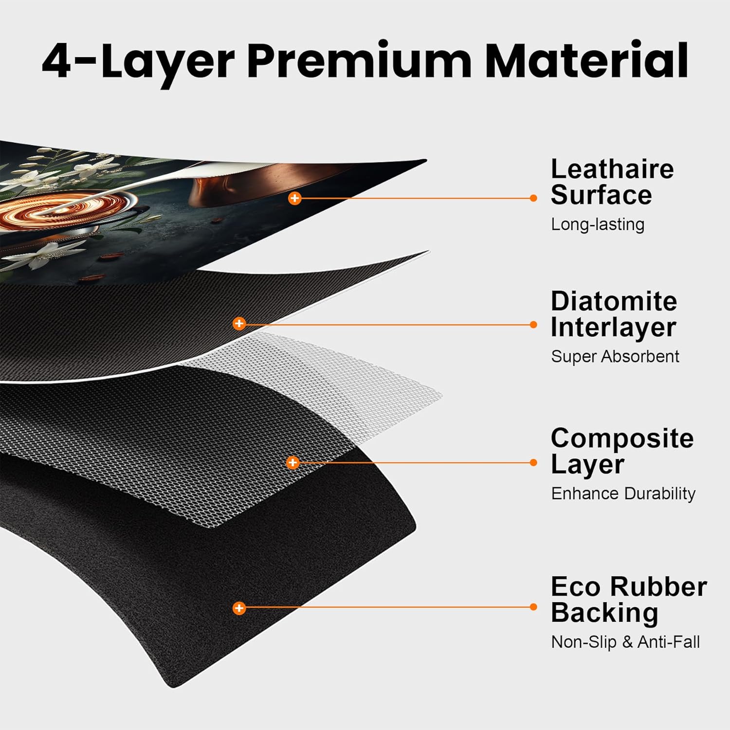 - Premium Coffee Mat - BVBOX 17"x 32" coffee bar mat is made of durable and tear-resistant materials, ensuring long-lasting durability. Its four-layer design features super water absorption, leak-proof and anti-slip performance, providing reliable protection for your countertop.