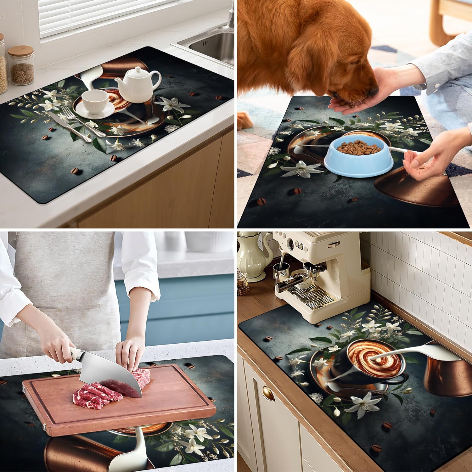 - Multipurpose Mat - It is more than just a coffee bar mat. This super absorbent and quick-drying mat can be widely used as a dish and cup drying mat in the kitchen, bar and bathroom. A perfect all-in-one solution for any surface that needs to keep away from stains or liquid.